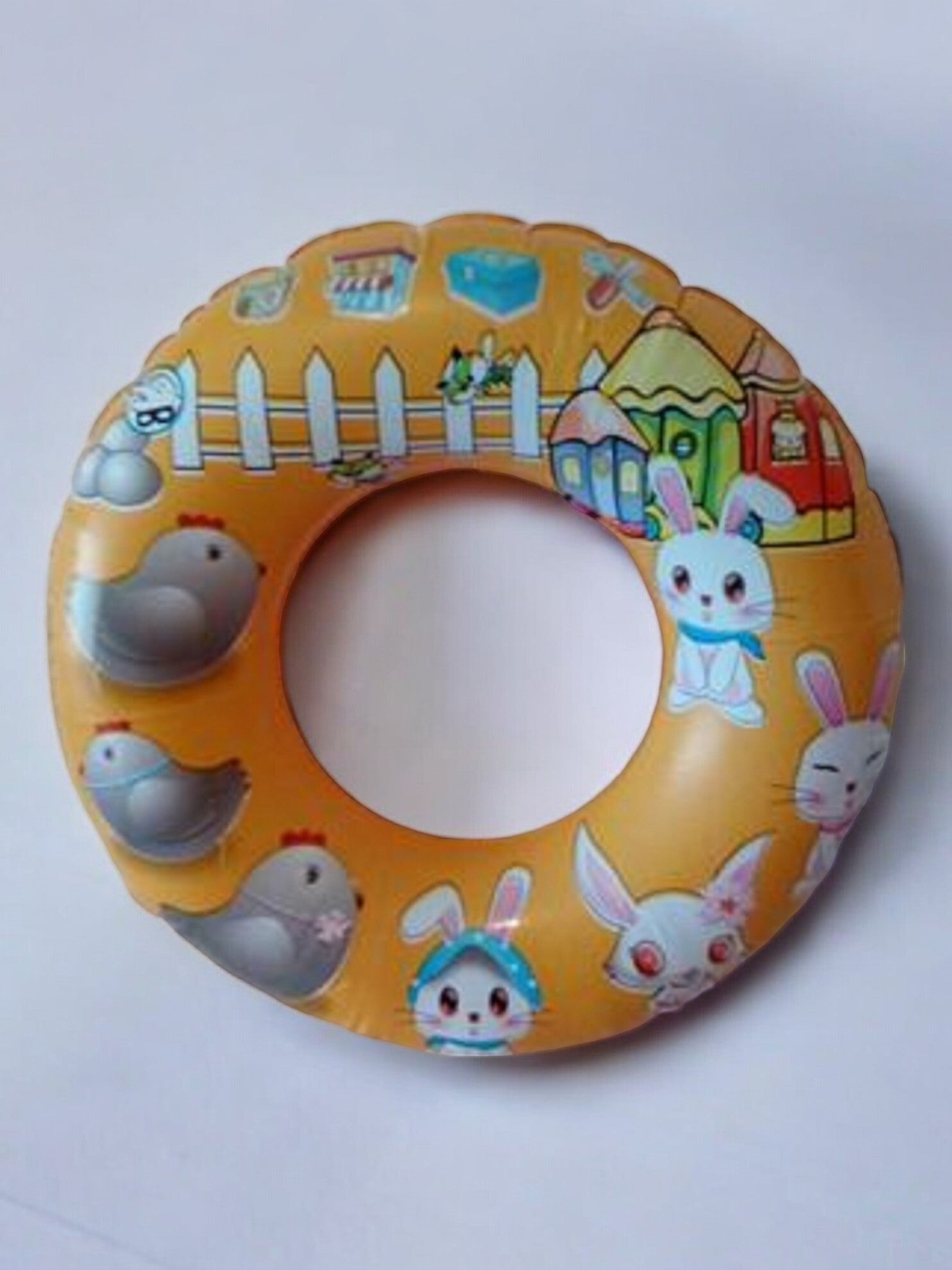 Joli anneau de bain gonflable, orange avec des lapins. L'anneau de bain est fabriqué en vinyle robuste et est idéal pour une utilisation à la piscine ou à la plage. taille du bracelet de natation : 48 cm. poids 89 g