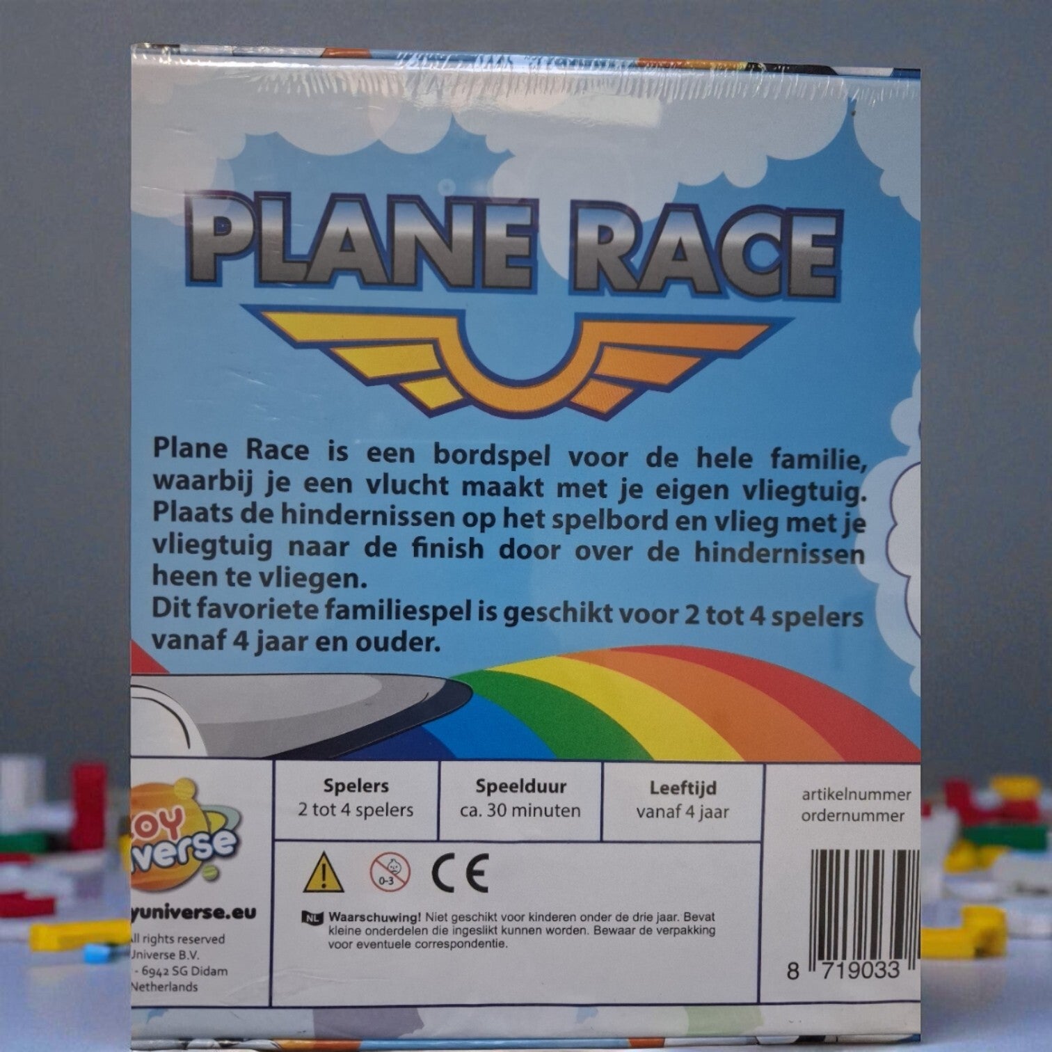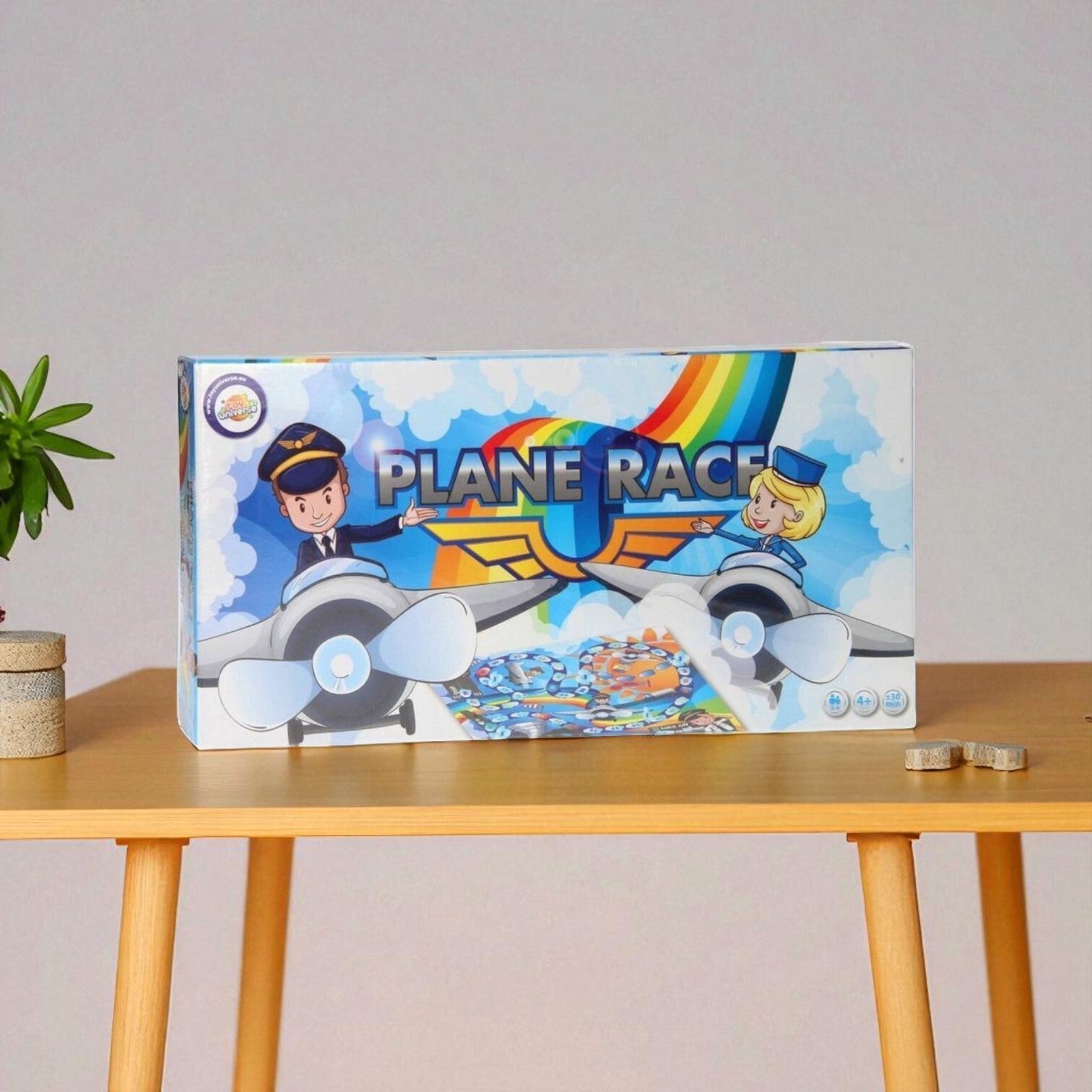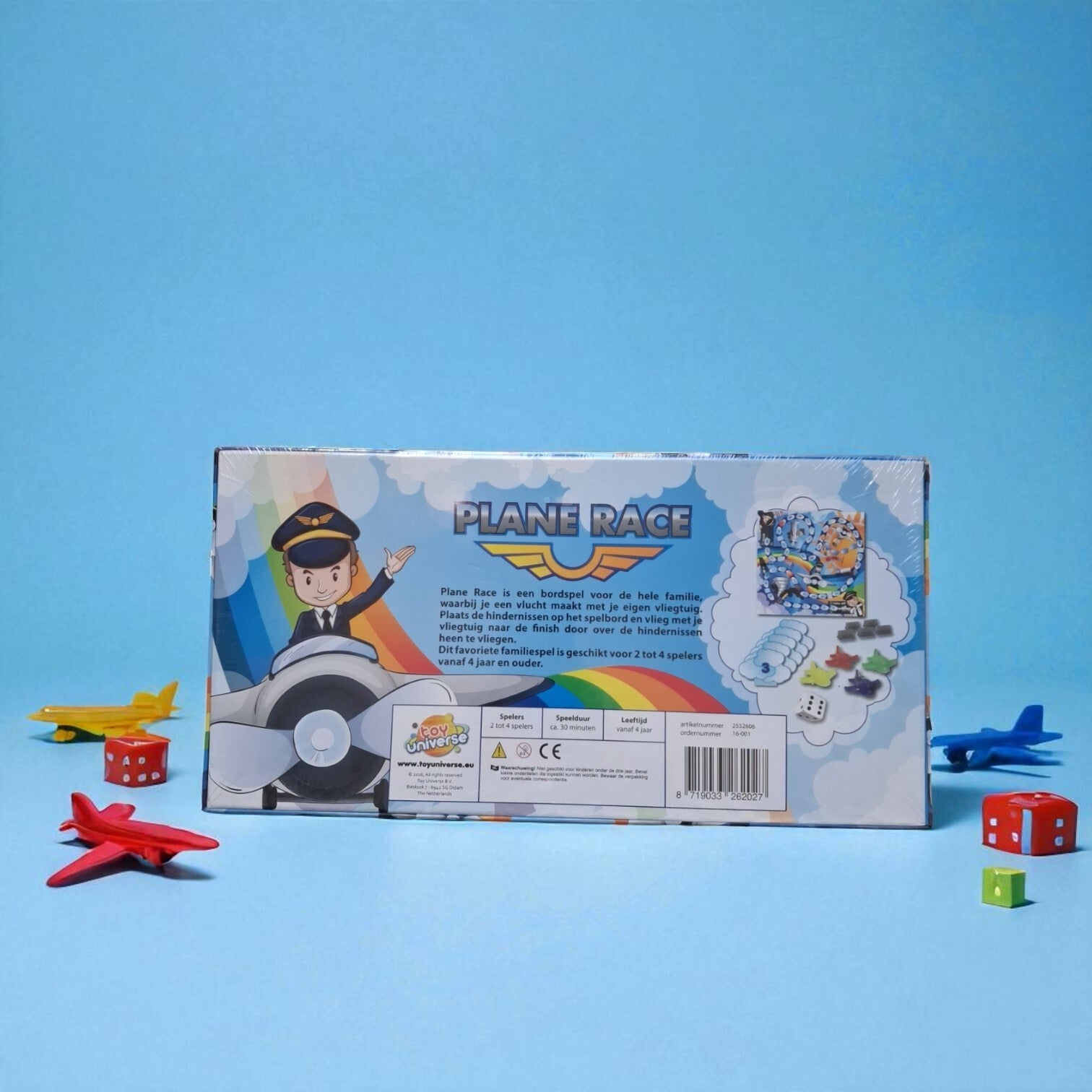 Vlieg je weg naar de winst in dit bordspel Plane Race Plaats de hindernissen op het spelbord en vlieg met je vliegtuig naar de finish door over de hindernissen heen te vliegen! Dit favoriete familiespel is geschikt voor 2 tot 4 spelers vanaf 4 jaar uitgever Toy Universe gewicht 752 gram