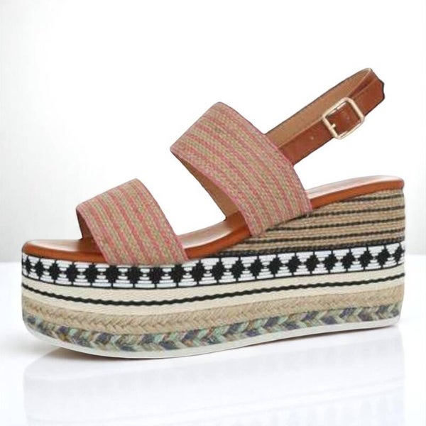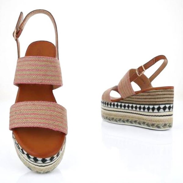Hoge sleehak sandalen met sluitriempje aan de zijkant en 2 brede banden wat voor extra stevigheid zorgt touwwerk rondom de schoen zoolhoogte 6cm hakhoogte: 3cm hoogte zool incl hak 9cm maat 40