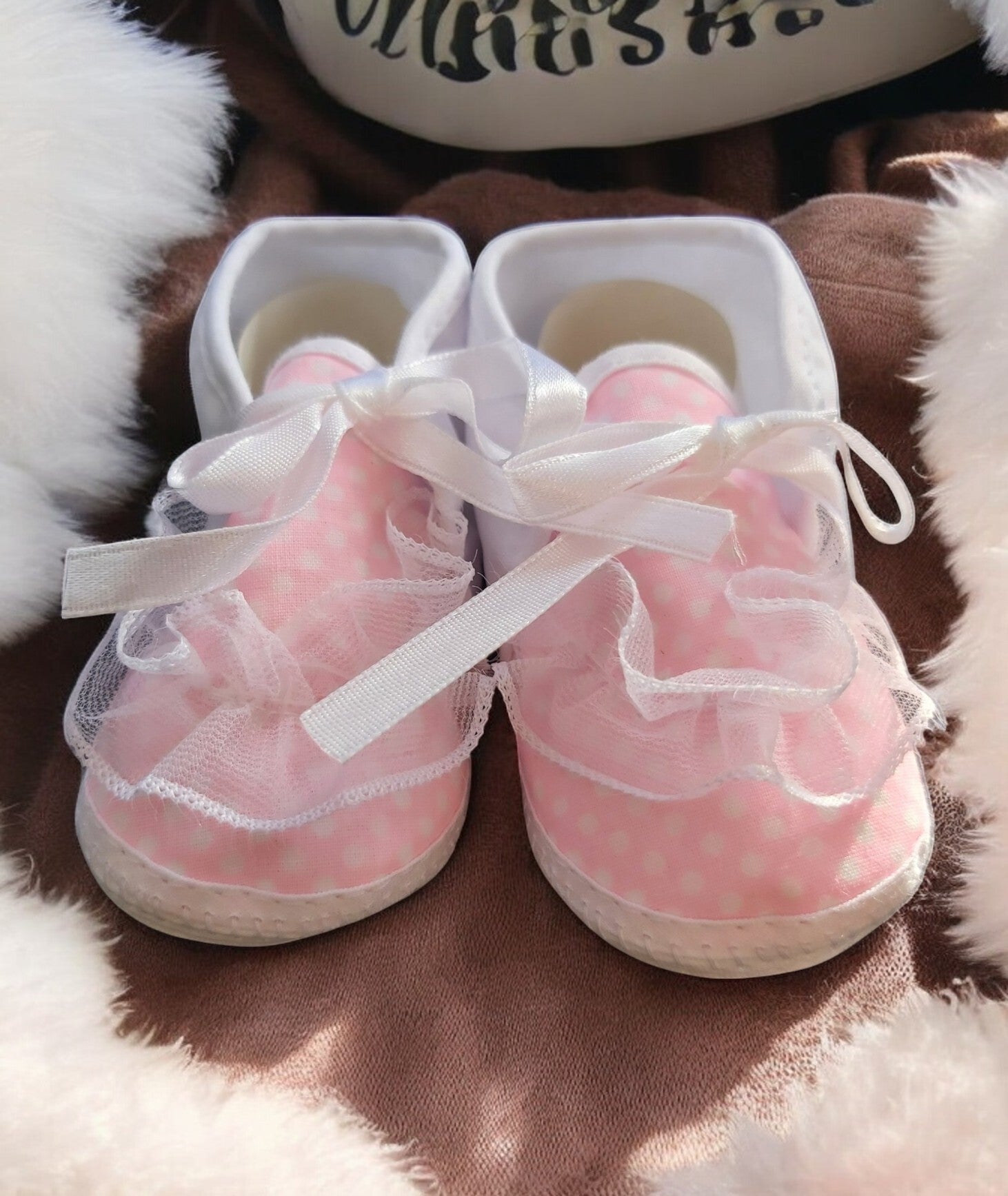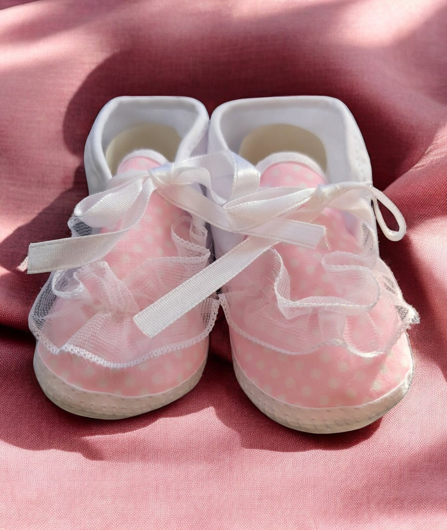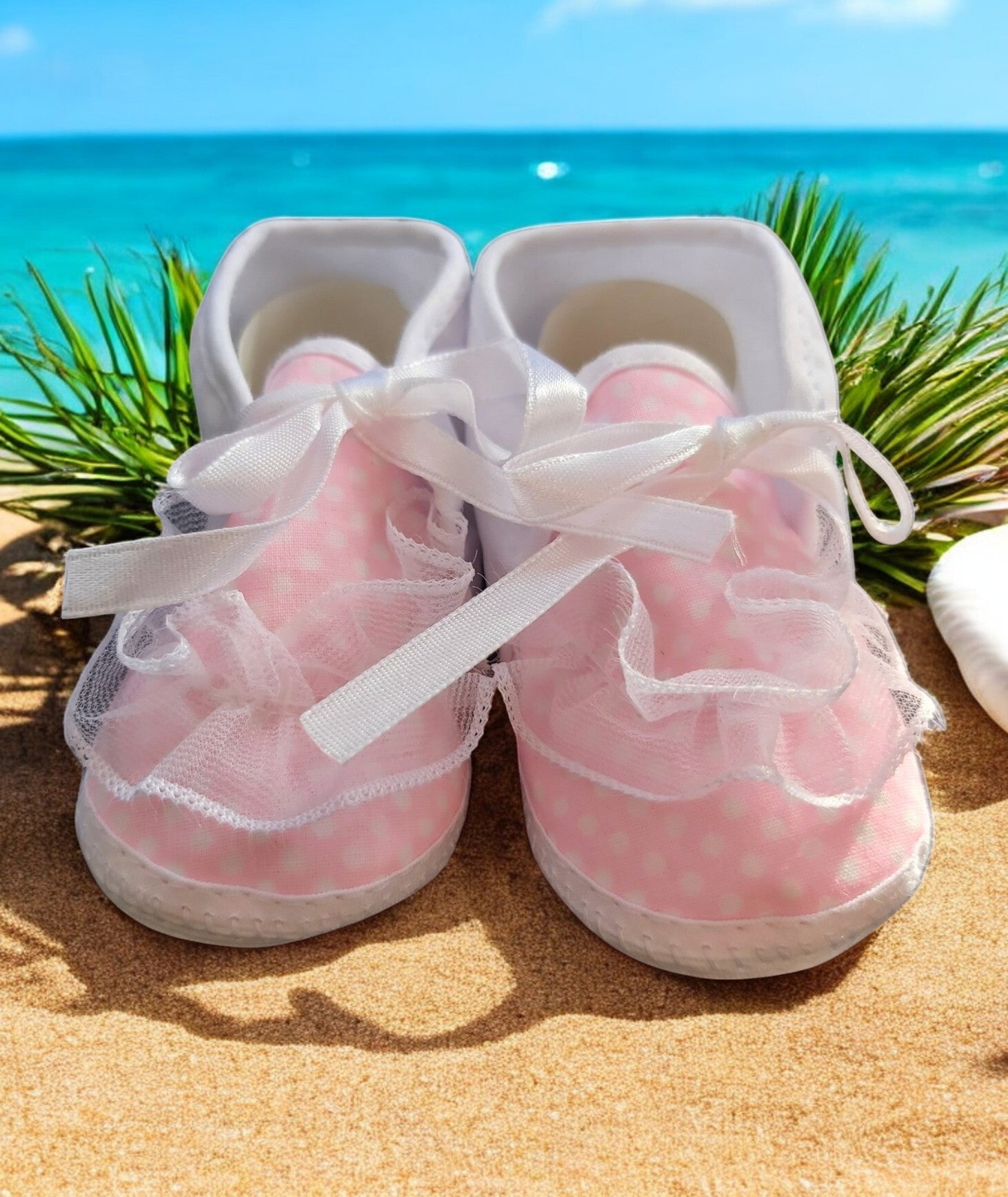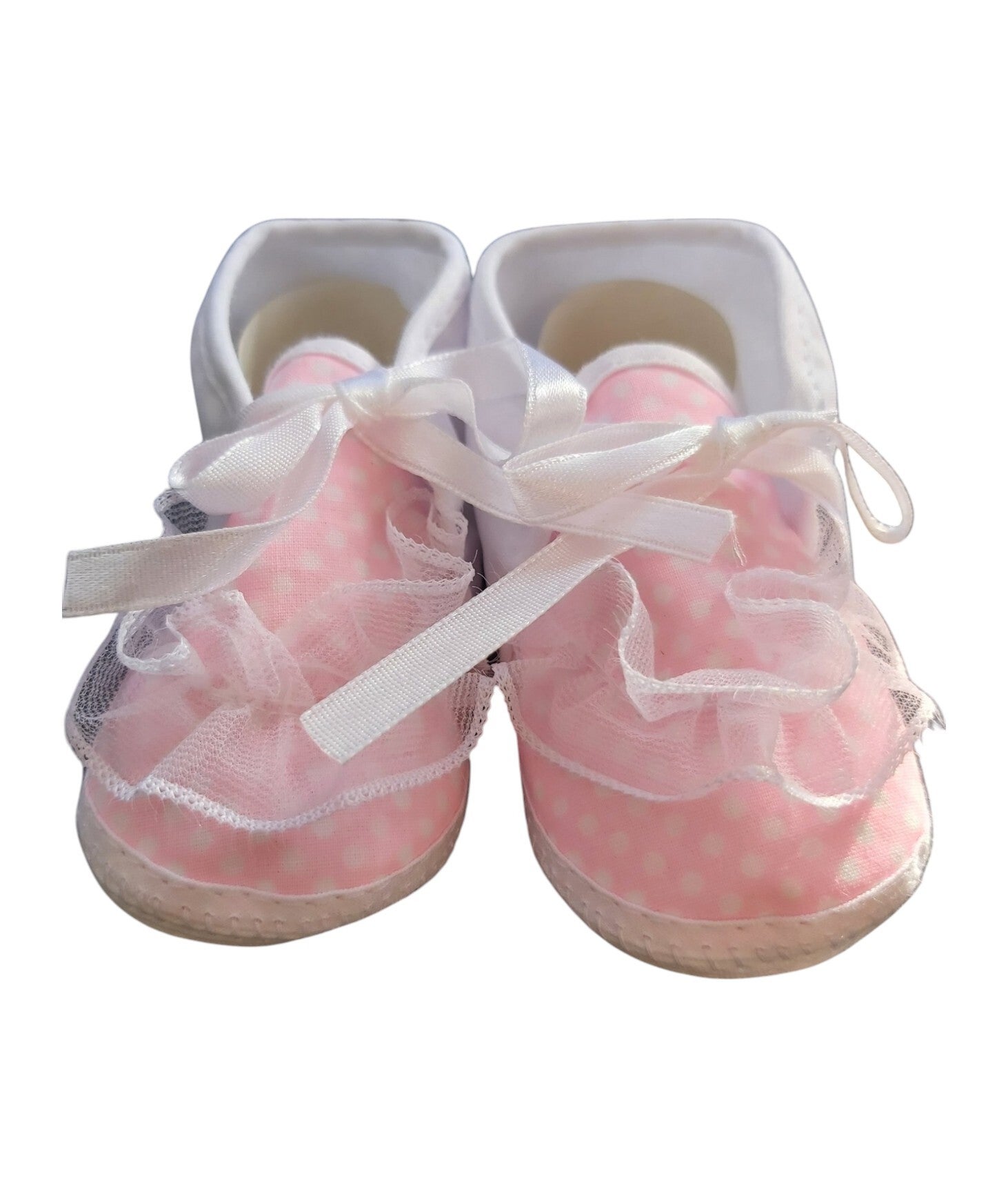 Babyschoentjes roze met kant en witte stippen 0-12m maanden , leuk om cadeau te geven. Junior Joy Newborn babyschoenen Deze schattige babyschoenen zijn perfect voor jouw pasgeboren baby. Ze zijn gemaakt van 100% katoen en zitten daarom extra zacht om de voetjes. Maat: one size Leeftijd: 0-12 maanden
