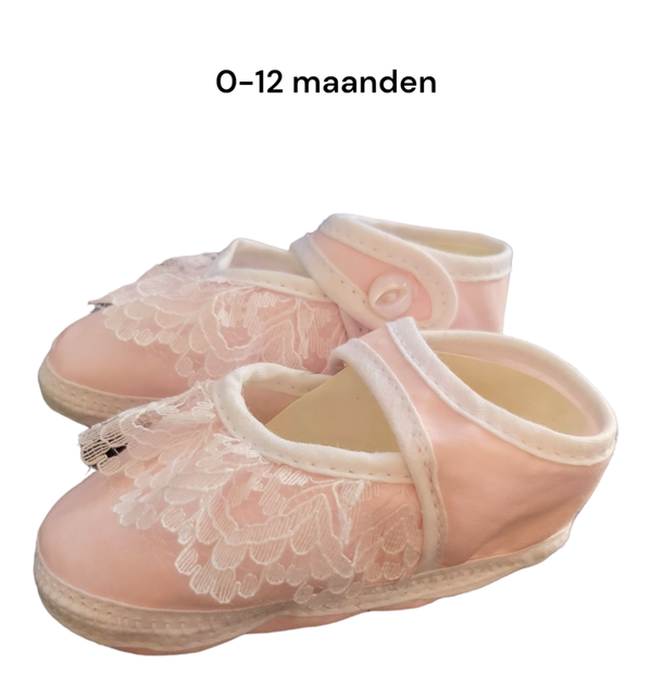 Babyschoentjes roze met wit kant 0-12m maanden , leuk om cadeau te geven. Junior Joy Newborn babyschoenen Deze schattige babyschoenen zijn perfect voor jouw pasgeboren baby. Ze zijn gemaakt van 100% katoen en zitten daarom extra zacht om de voetjes. Kleur: wit/lichtblauw Maat: one size Leeftijd: 0-12 maanden