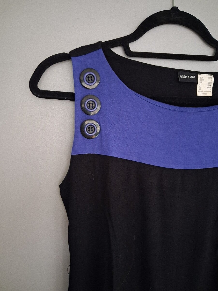 Stretchy jurk van het merk Bodyflirt. Maat S/M. De jurk heeft een siergesp en sierknopen.