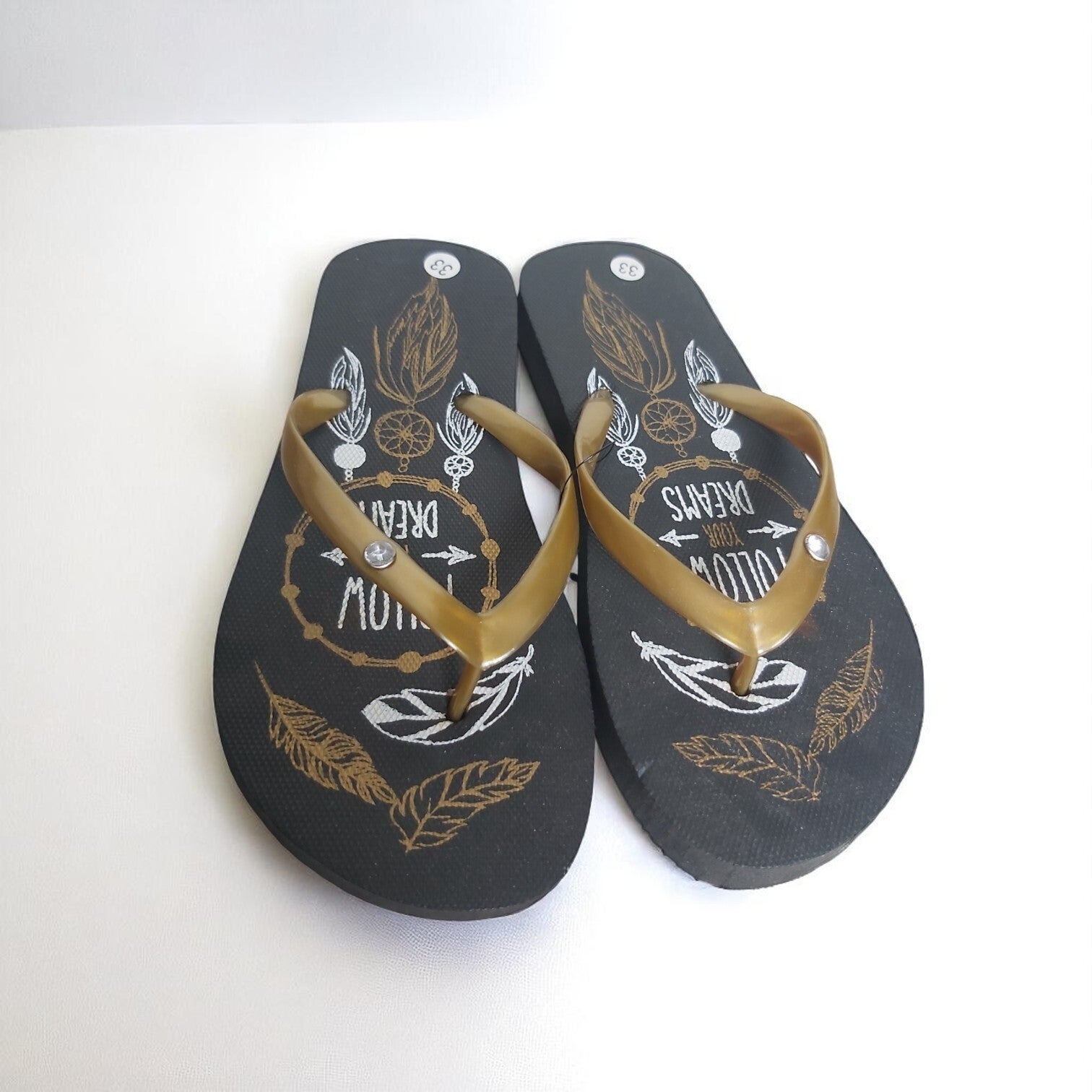 Zwart gouden teen slippers met strass steentjes. Maat 33.