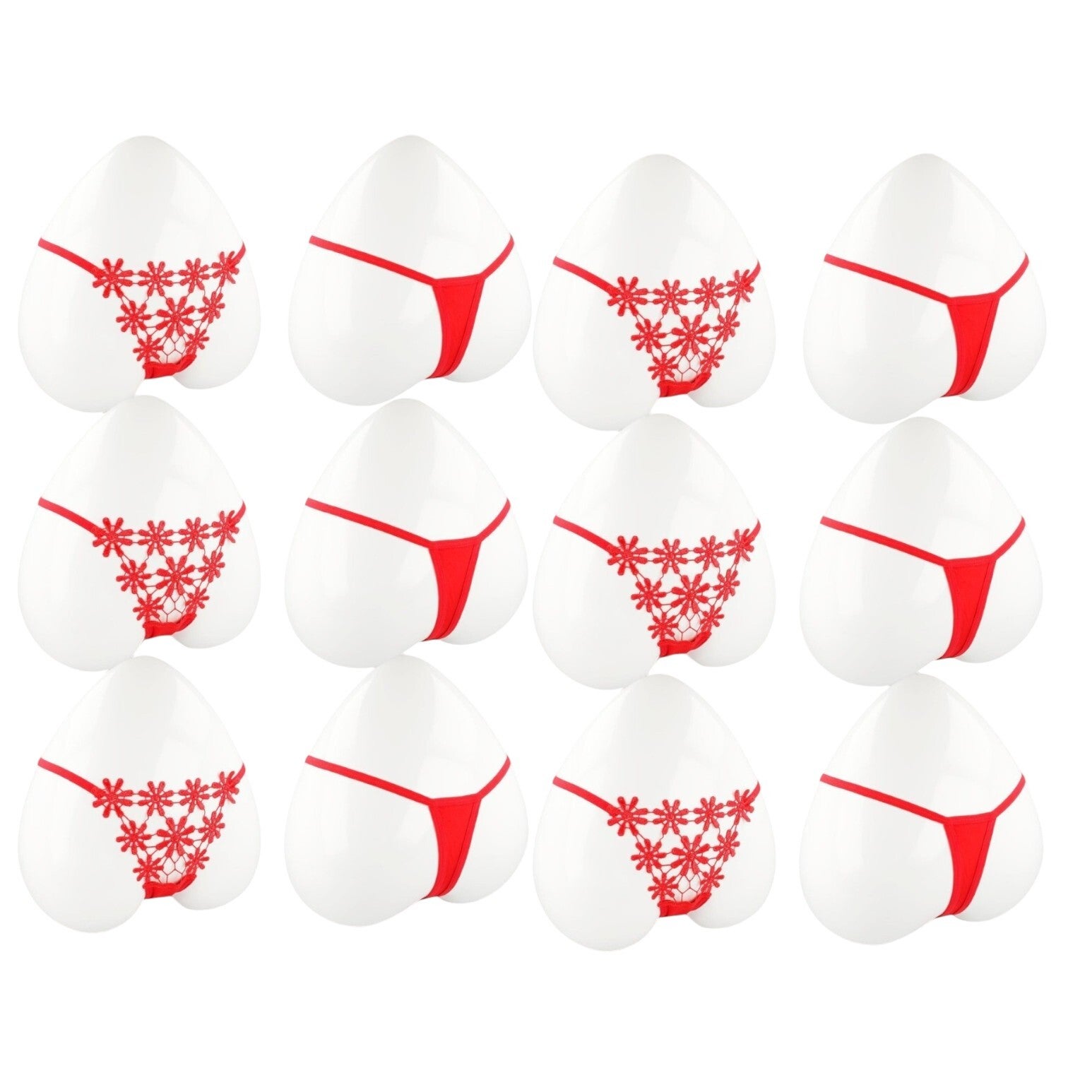 Mooie set van maar liefst 6 stuks. Deze rode string is versierd met delicate bloemmotieven, wat zorgt voor een speelse en verleidelijke uitstraling. Het ontwerp is minimalistisch aan de achterkant en heeft een gedetailleerde voorkant met de bloemige versieringen. De string is ontworpen om comfort en stijl te combineren, ideaal voor speciale gelegenheden of dagelijks gebruik onder kleding. Maat one size. Wordt aangeraden voor XS-S-M. Deze sexy strings zijn gemaakt van 90% polyamide en 10% elasthan. U ontvangt 6 stuks