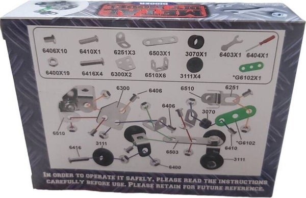 Doe-het-zelvers kunnen direct aan de slag met dit bouwpakket Voor uren speelplezier Specificaties: 54 onderdelen Kleur: zilver groen Materiaal: staal Afmetingen: 7,3 x 4,2 x 2,7 cm Leeftijd: vanaf 6 jaar. gewicht 68 gram