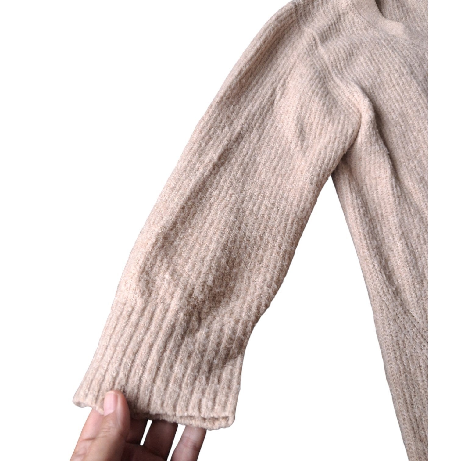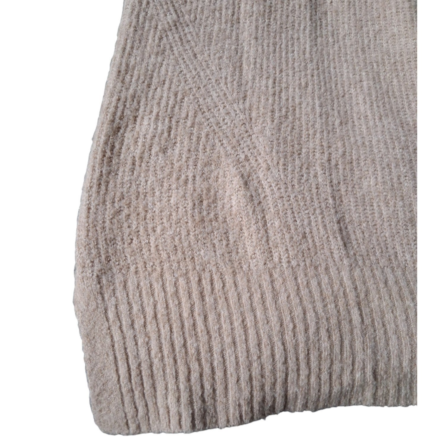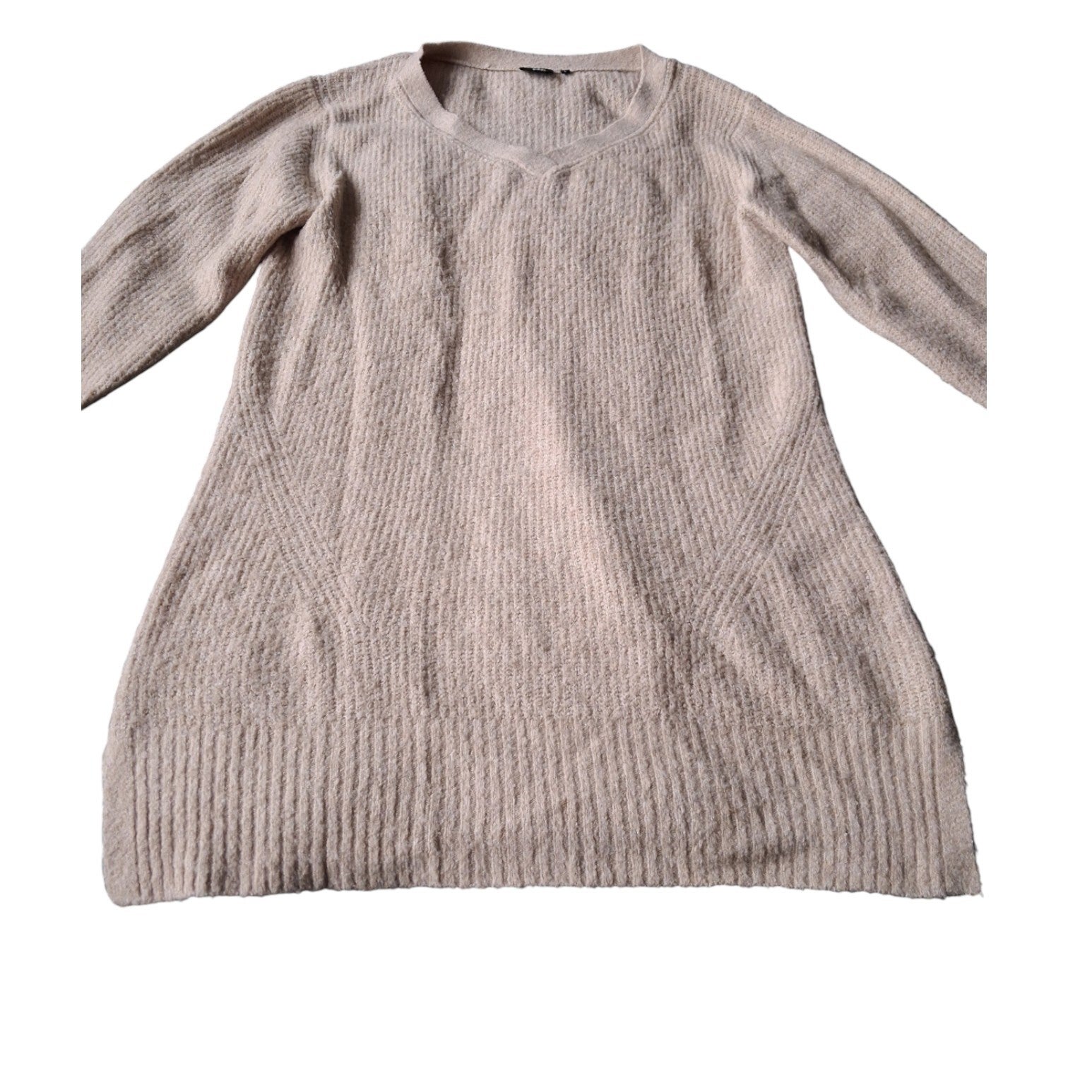 Gedragen. Heerlijke zachte en lekkere lange cozy trui voelt erg warm aan merk 9th avenue. kleur beige. Maat L