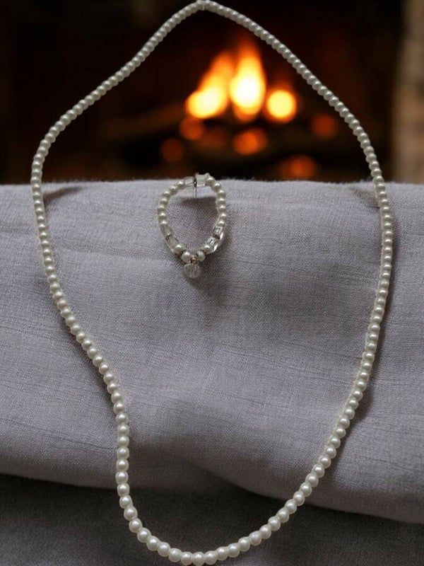 2-delig parelmoer set, de ketting heeft een de lengte van 55cm. En de armband is elastisch, en sluit goed aan.