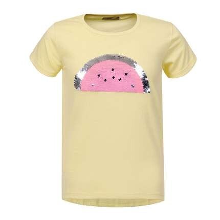 T-shirt watermeloen glitter geel roze zilver zwart maat 98 100% katoen afm plat gemeten: oksel 29cm lengte 44cm schouder 23.5cm