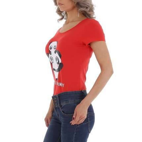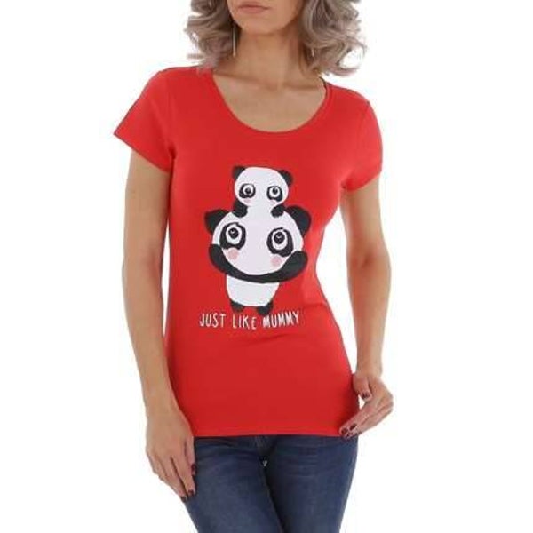 T-shirt getaileerd panda beren just like mummy rood zwart wit 95% katoen 5% elsthane met stretch maat M/38 plat gemeten: oksel: 42cm lengte: 64cm schouder: 38cm merk glo-story
