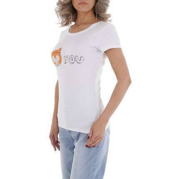 T-shirt getailleerd I love you wit oranje 95% katoen 5% elsthane met stretch Maat S plat gemeten: oksel: 41.5cm lengte: 61cm schouder 35cm