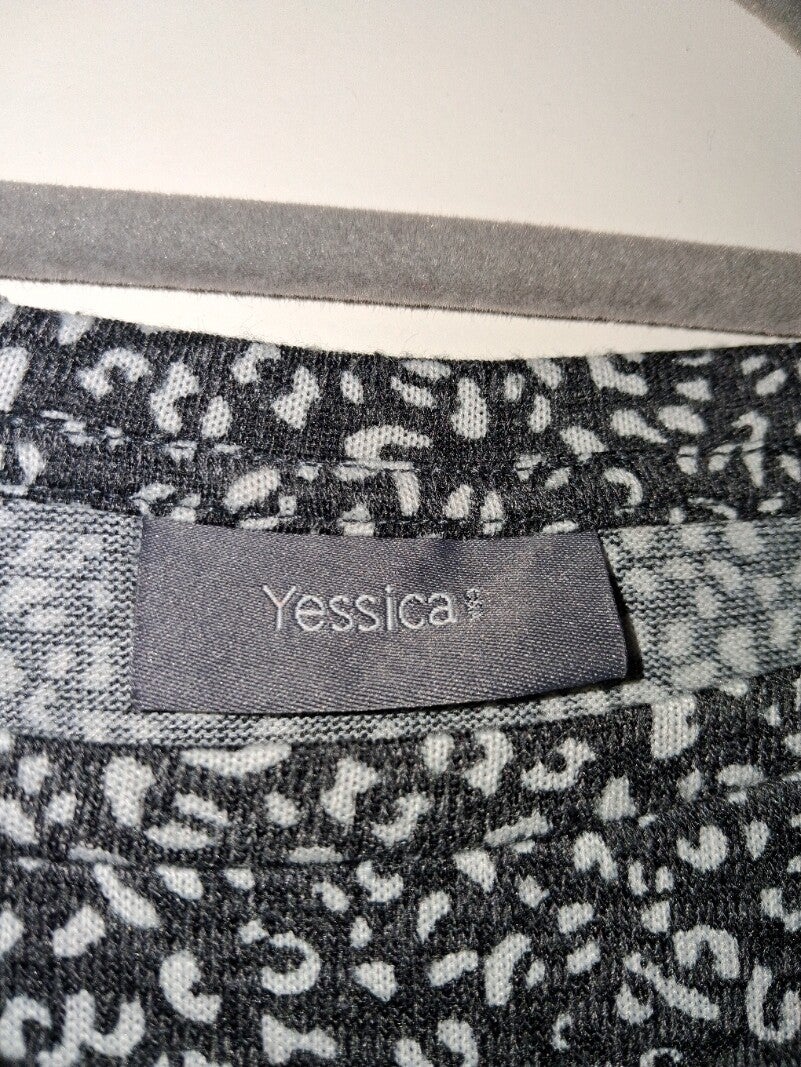 Weinig gedragen. Longsleeve shirt met ronde hals en lange mouwen. Kleur grijs panterprint, achterkant is wat langer dan de voorkant. maat M oksel 57cm lengte 67cm. merk C&A Yessica