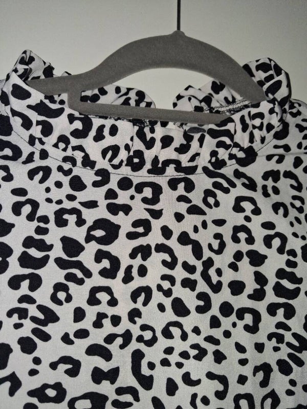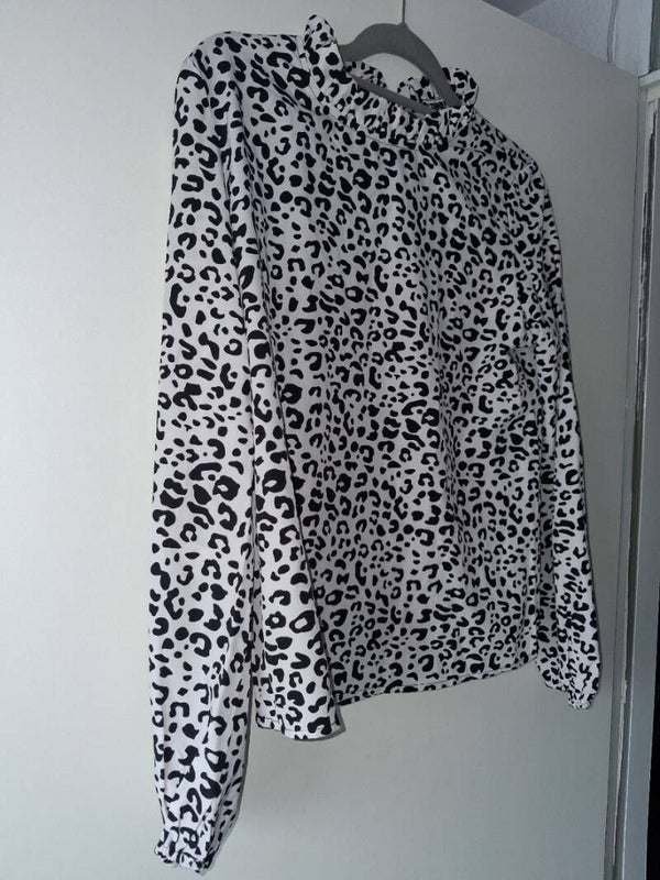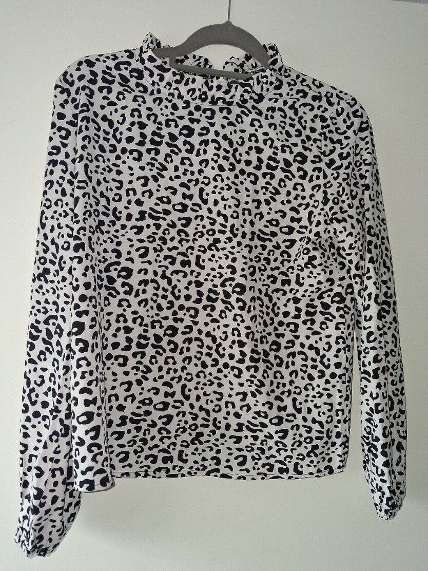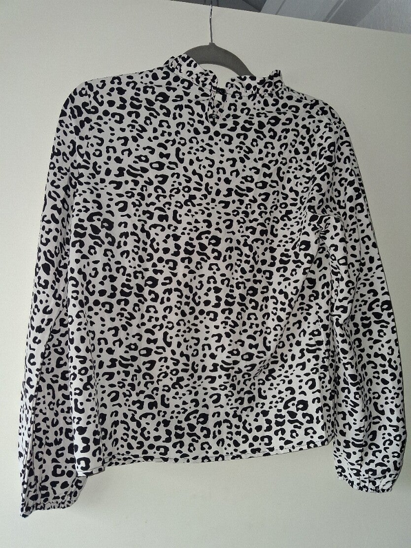 Zwart-wit blouse panterprint M