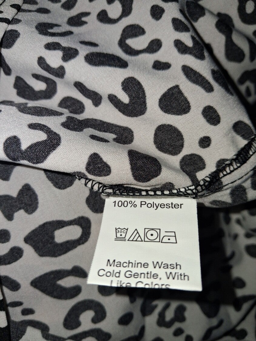 Weinig gedragen. Deze blouse heeft een opvallende luipaardprint in zwart-wit, wat zorgt voor een gedurfde en stijlvolle uitstraling. De blouse is voorzien van lange mouwen met elastische manchetten en een hoge, geplooide kraag die sluit met een knoopje aan de achterkant. De pasvorm is losvallend en comfortabel. 100% polyester. Maat M oksel 49cm schouder 37cm lengte 60cm
