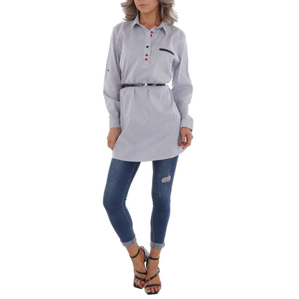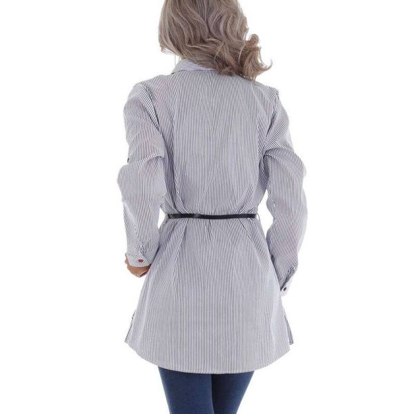 nieuw tuniek lichtblauw krijtstreep met rode knoopjes taille riempje knoopjes en klassieke kraag lange mouwen mouwen kunnen ook opgerold en vast gezet worden 50% katoen, 45% polyester, 5% elastaan/spandex met stretch maat XXL