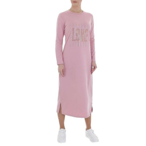 Bekijk en vergelijk de afmetingen, zo voorkomt u retouren. Sweatjurk kleur roze strass steentjes LOVE glitter zij splitjes ronde hals lange mouwen lengte lang tot halverwege kuit 95% katoen, 5% elastaan/spandex maat XL/XXL, afmetingen plat gemeten: oksel 51cm schouder 44cm lengte 123cm.