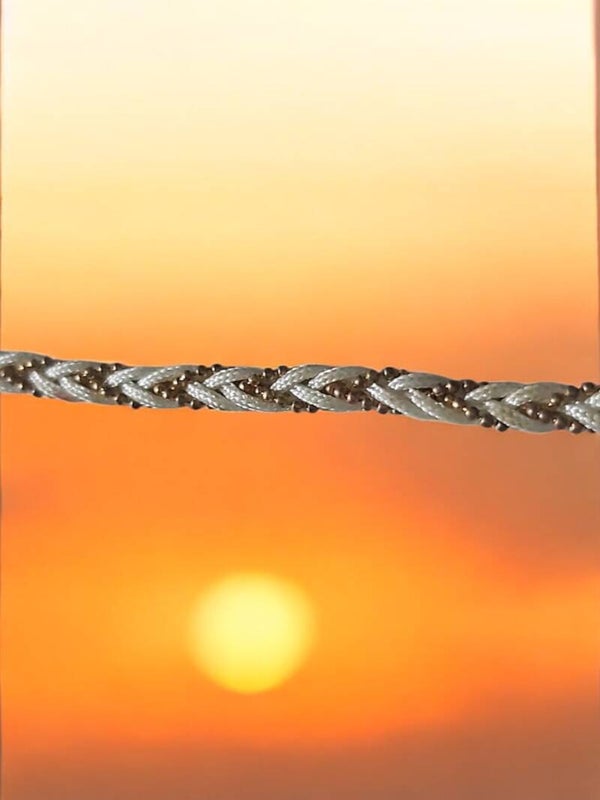 Bracelet de cheville tressé doré et blanc. Ce bracelet de cheville a une longueur totale de 25 cm.