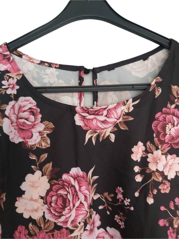 Zomers en luchtig shirt met bloemenprint zwart roze maat L