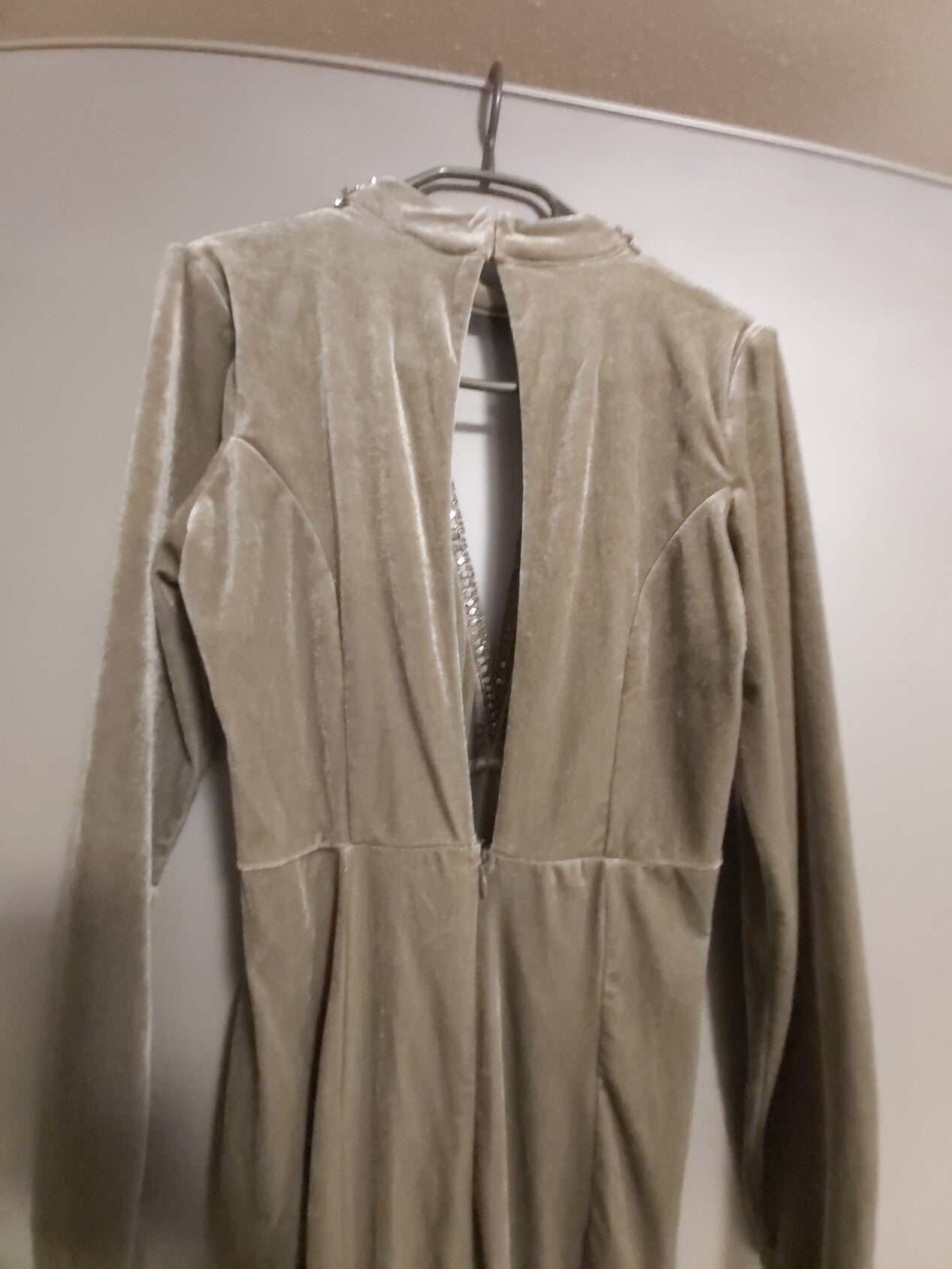 1x gedragen, voyelles lange jurk velours glimmend grijs