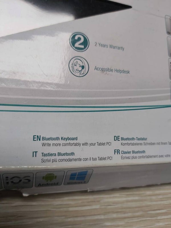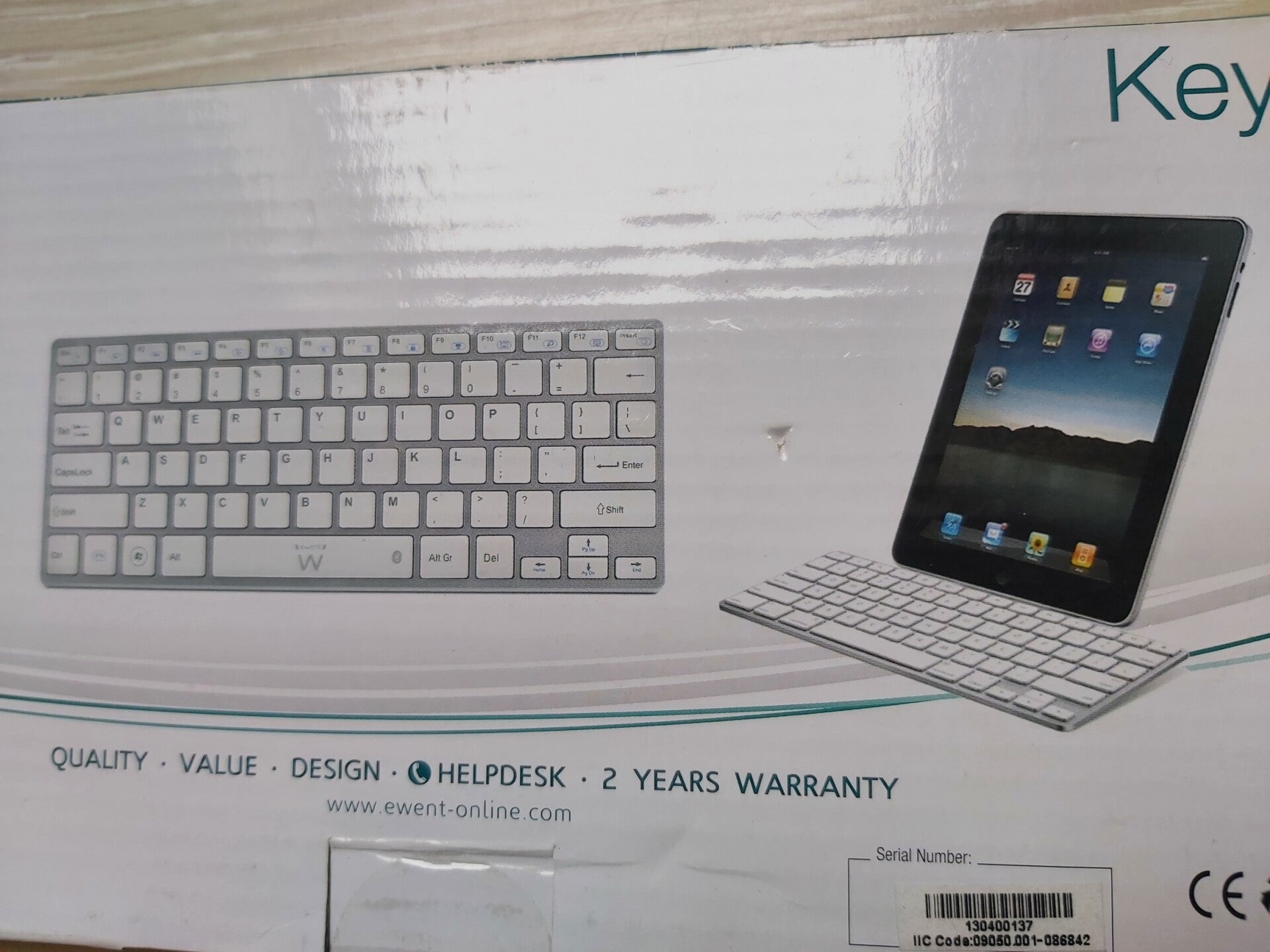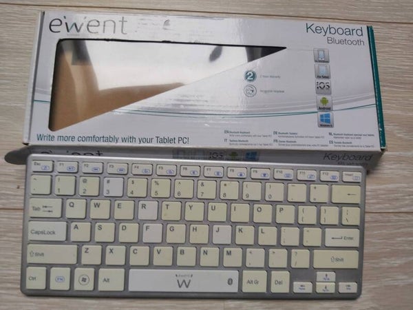 Tweedehands Ook moeite met het typen op je tablet? De EW3143 lost dit voor je op. Dit compacte toetsenbord verbind je via bluetooth met je Android of Apple Tablet en je typt veel prettiger dan op je tablet. Het toetsenbord wordt via twee AAA batterijen gevoed en is energiezuinig.