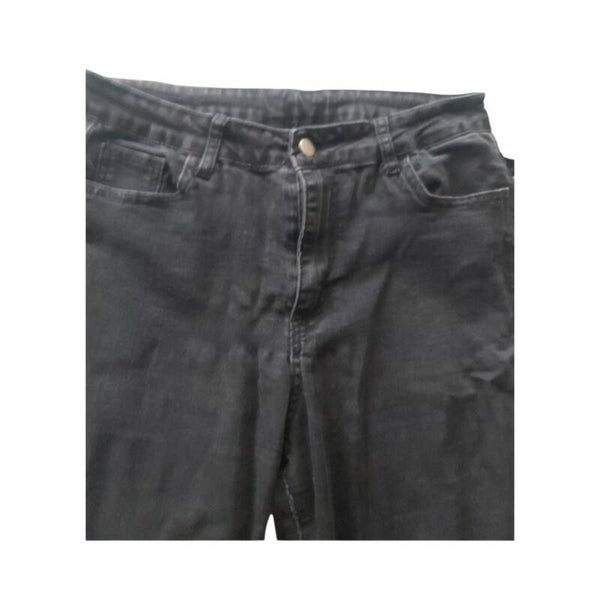 Stretchy skinny jeans grijs zwart met zilveren sliertjes aan de achterkant van de jeans maat L afmetingen plat gemeten: taille rekbaar 40-47cm heup rekbaar 50-62cm binnenbeen lengte 69cm totale lengte 98cm.
