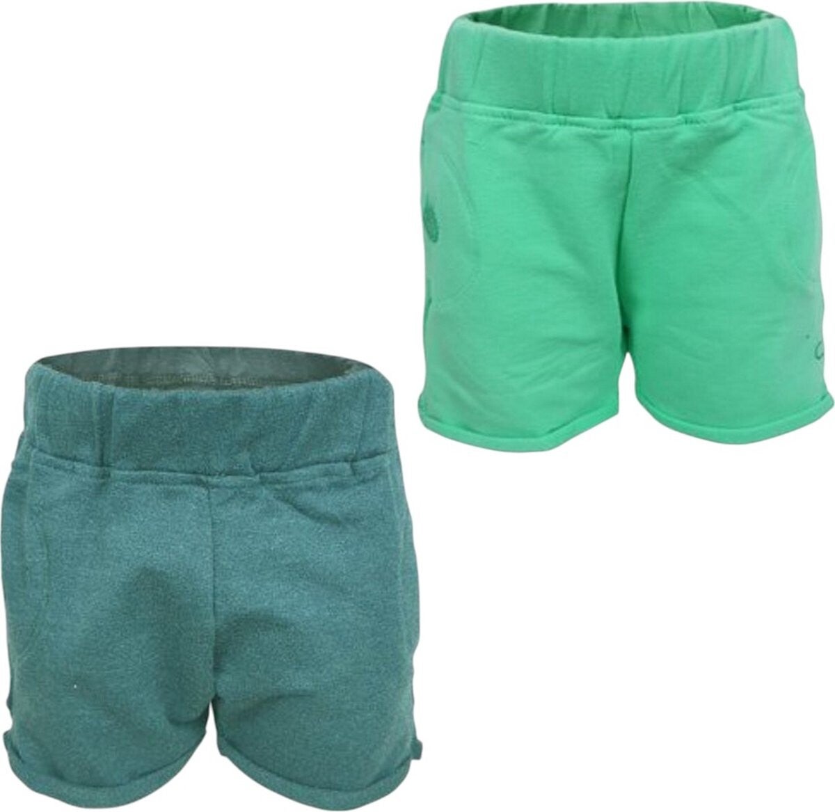 Set van 2x Comfortable shorts met elastieken taille band en zachte stof 70% katoen 30% polyester kleur: groen ,mintgroen Maat 80/86 12-18 mnd Merk: Little love