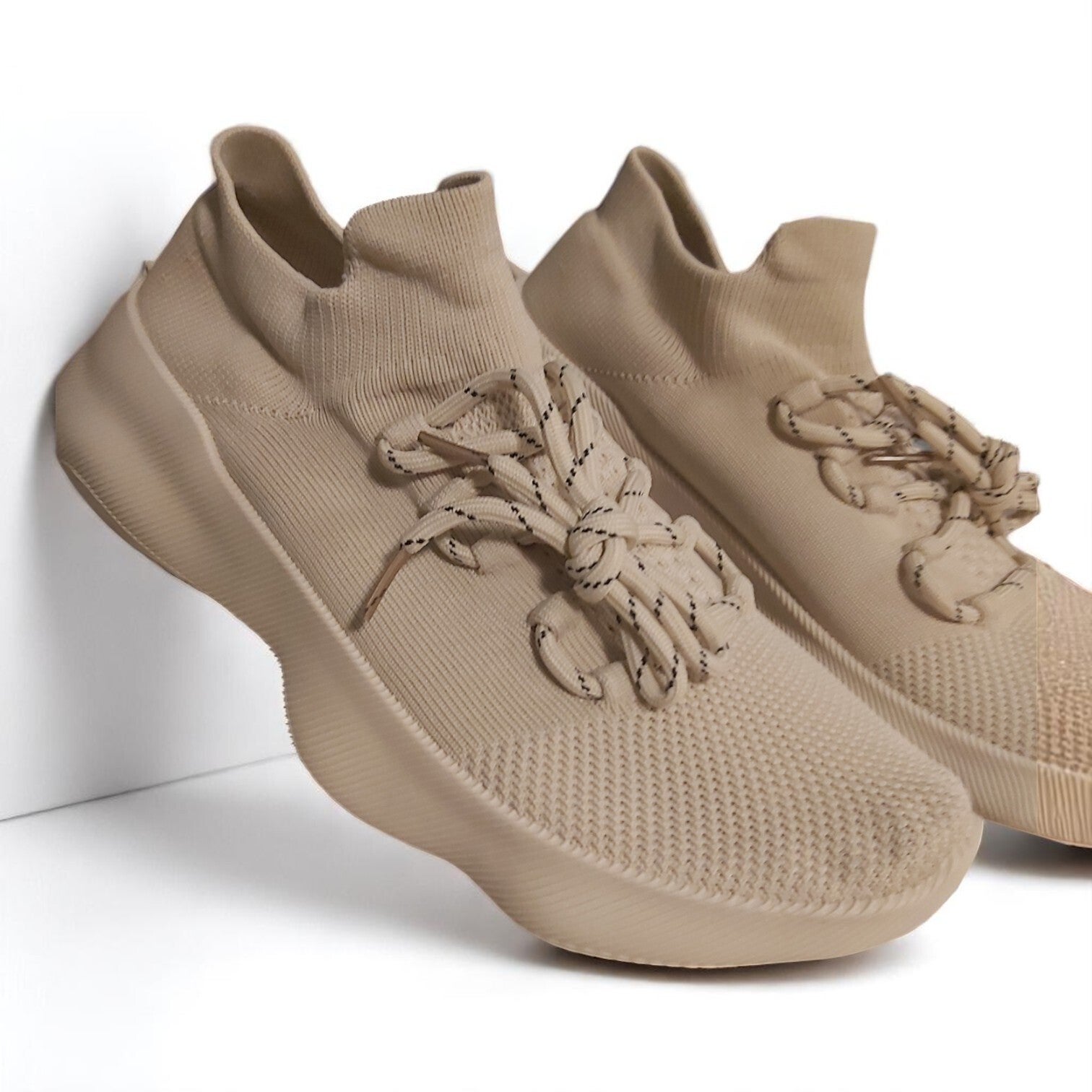 Kinder / jongens sneakers voor de zomer, luchtig en elastisch met sierveter en met profielzool en losse binnenzool. Deze instap sneakers voelen aan als pantoffels. Deze sneakers hebben een smalle instap, dus alleen geschikt voor kinderen met smalle voetjes! kleur beige. maat 43 (valt als 42)