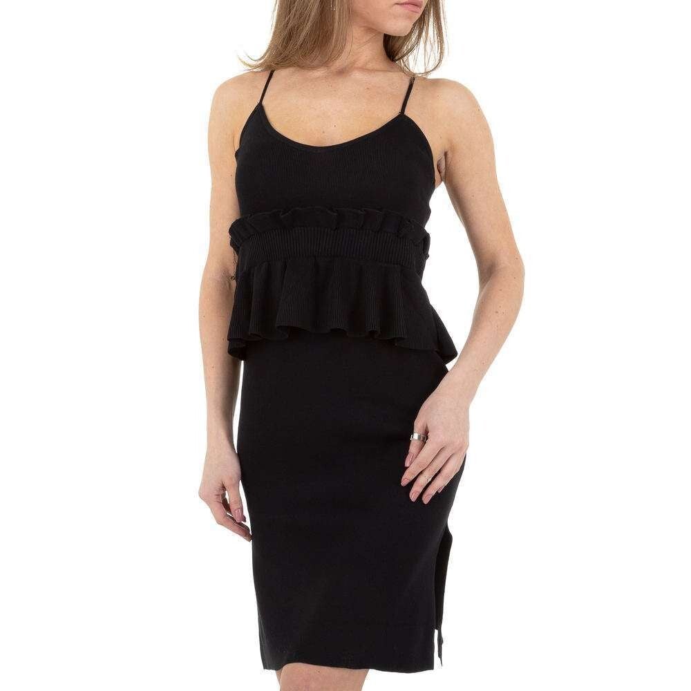 Ribgebreide jurk, stretchy met spagettibandjes en plooistuk rondom onderborst taille. Materiaal: 65% katoen, 35% polyester. kleur zwart. maat M/L