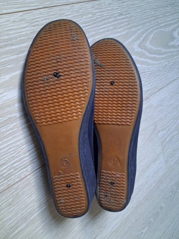 gedragen en netjes, je zou er een ander zooltje in kunnen doen, aangezien deze een losse binnenzool heeft. Heerlijke instappers met sierstrikjes op de bovenkant. kleur marineblauw. maat 41