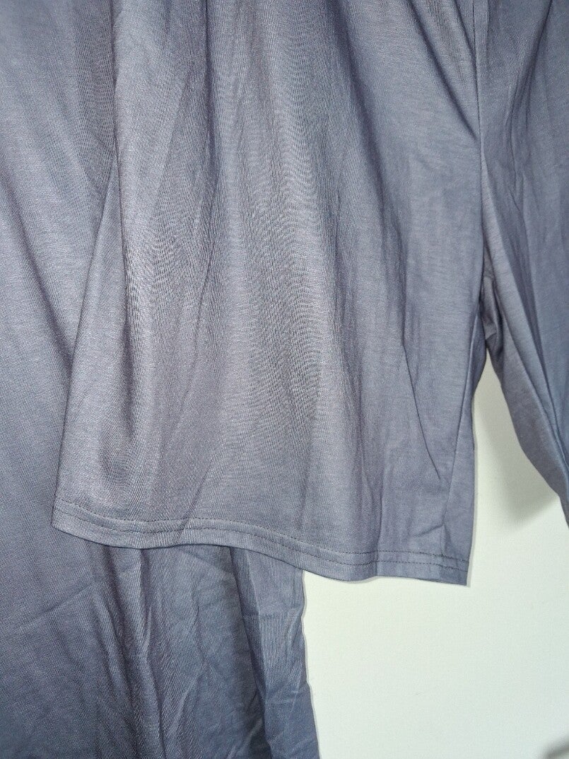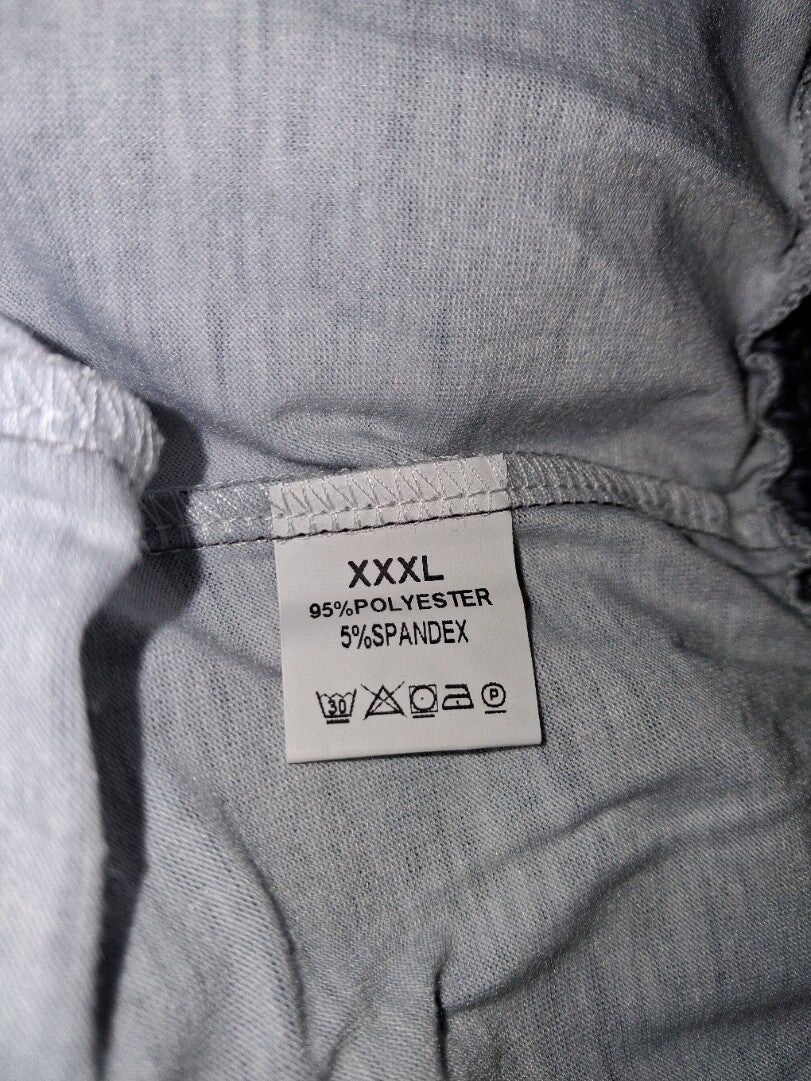 T-shirt en korte broek set. Het T-shirt heeft korte mouwen en een ronde hals. De korte broek heeft een elastische tailleband en insteekzakken aan de zijkant. kleur grijs. maat XXXL afmetingen T-shirt schouder 53cm oksel 64cm lengte 77.5cm. Short taille rekbaar 45-65cm lengte 54cm. 100% polyester