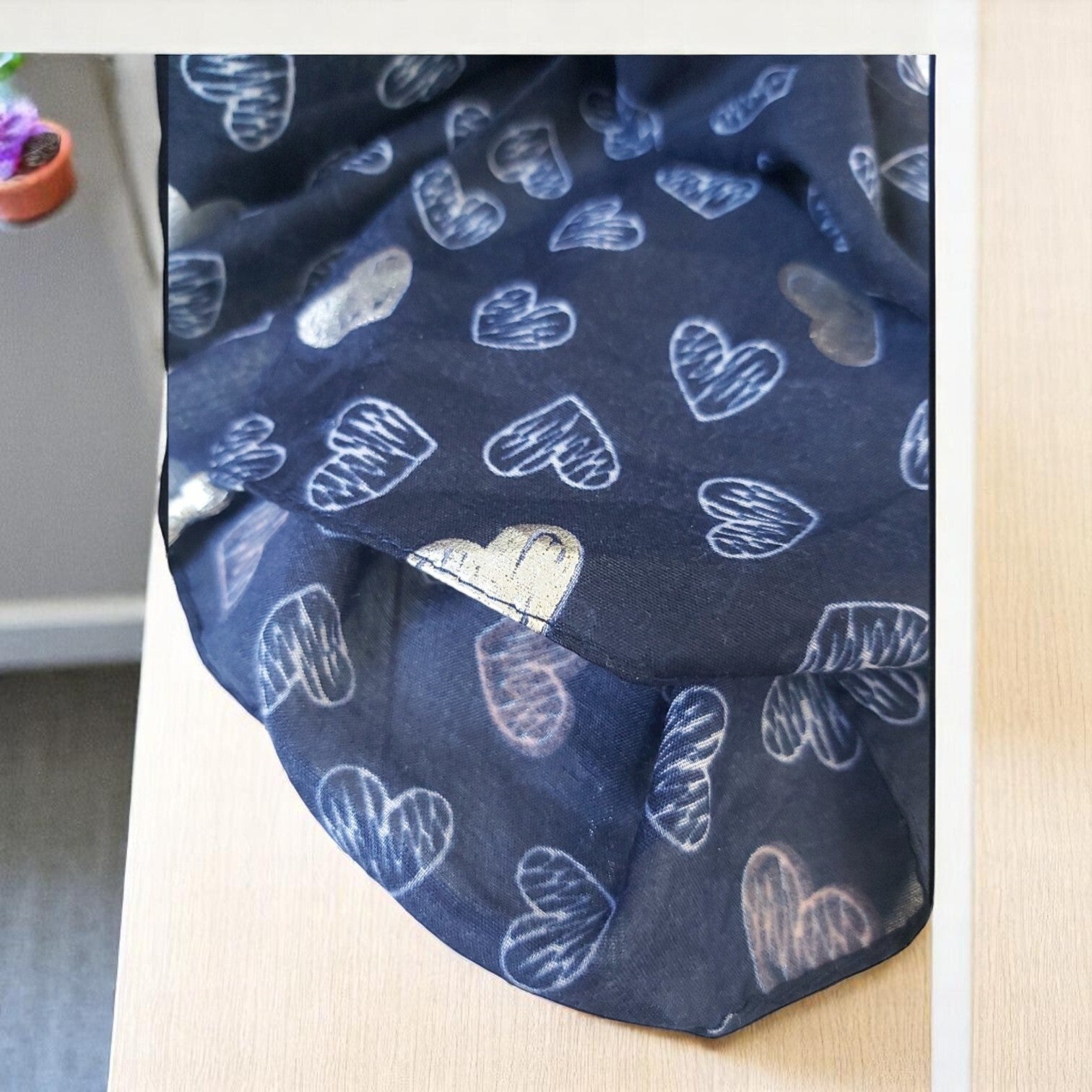 Mooie fashion lichtdoorlatende sjaal, donkerblauw met zilveren hartjes afmetingen 128cm x 50cm