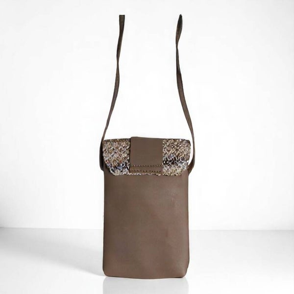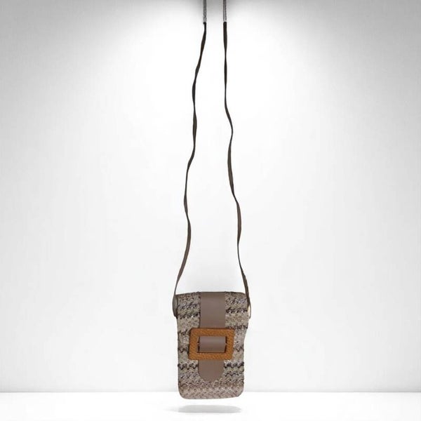 Telefoon tasje ibizastyle gemaakt in kleurig PU materiaal. kleuren creme beige bruin wit. Het ideale tasje voor bij elke natuur teinten outfit. De afmeting van dit model is: 12 cm breed 18 cm hoog.