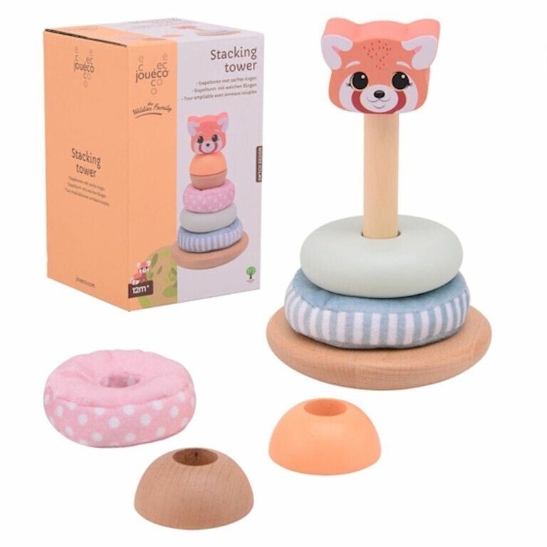 Joueco Houten Stapeltoren met zachte stapel ringen vanaf: 12 Maanden