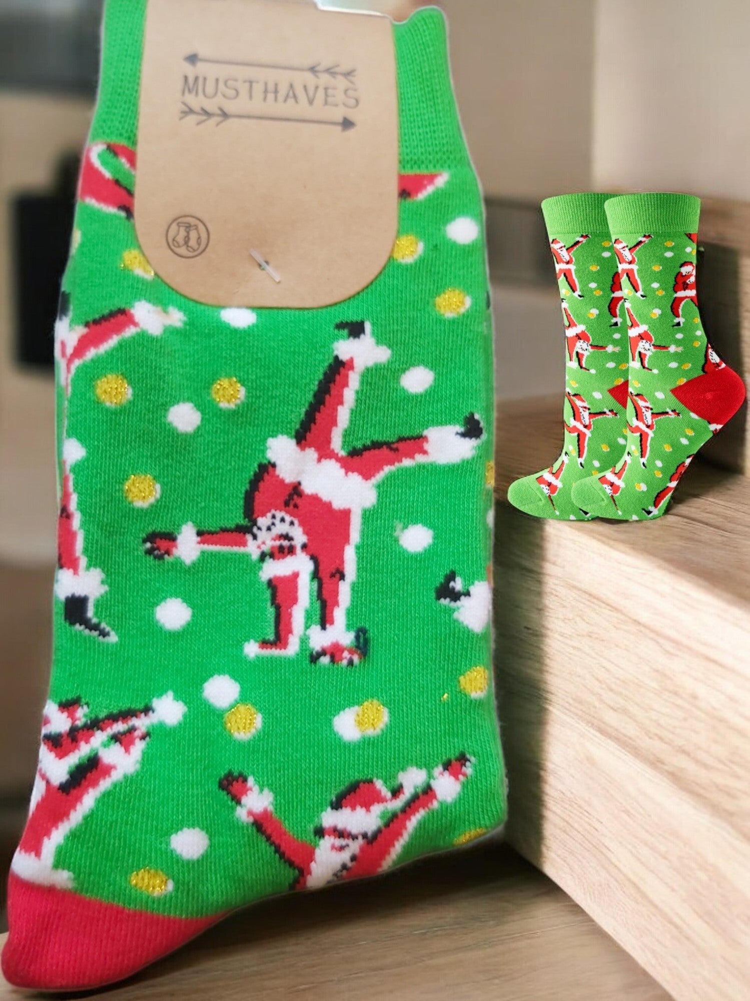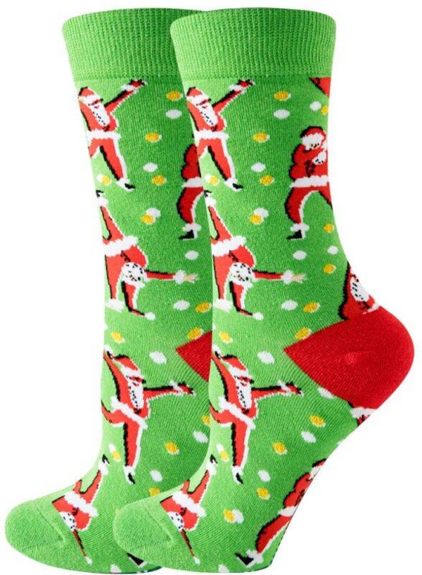 Des chaussettes mignonnes et joyeuses avec un imprimé amusant de pères Noël dansants. Dans cette série, ce sont toutes des chaussettes joyeuses sur le thème de Noël. Les chaussettes sont fabriquées en coton doux et souple et conviennent à différentes pointures de chaussures, des pointures 38 à 45.