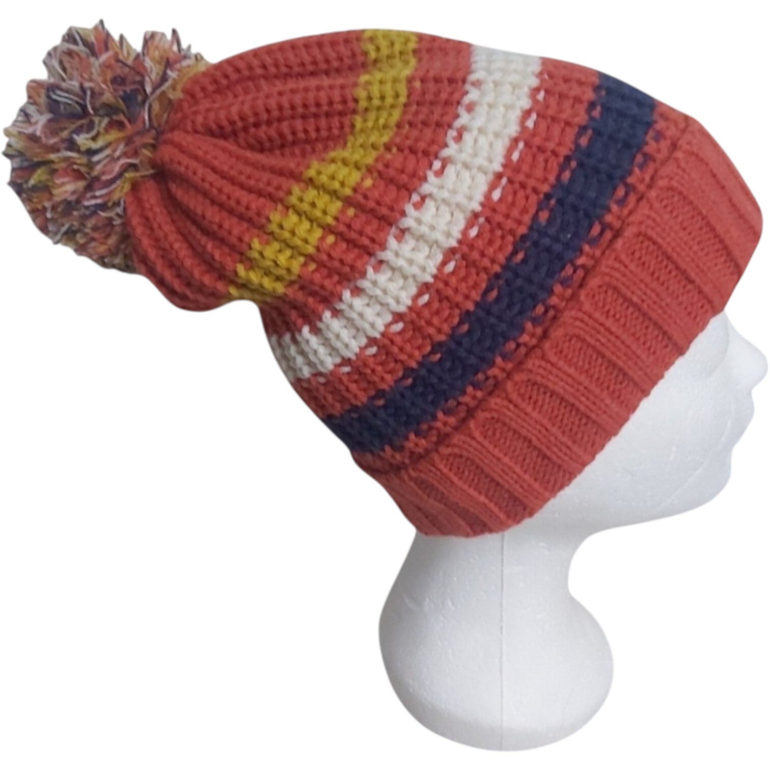 Weinig gedragen. Heerlijke warme beanie winter muts , gestreept in de kleuren oranje mosterdgeel paars wit. Merk BPC.
