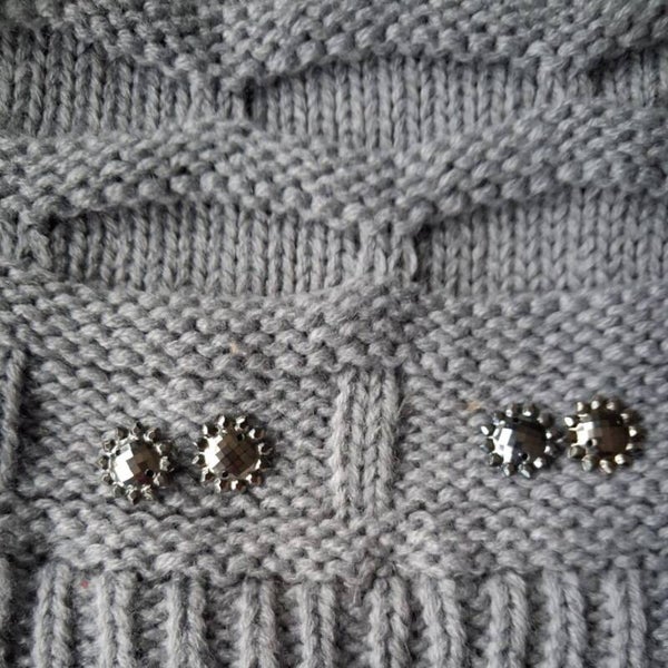 Weinig gedragen. Heerlijke warme beanie muts met kabelpatroon en sierlijke zilveren zonnetjes. Kleuren grijs en zilver. Maat one size.