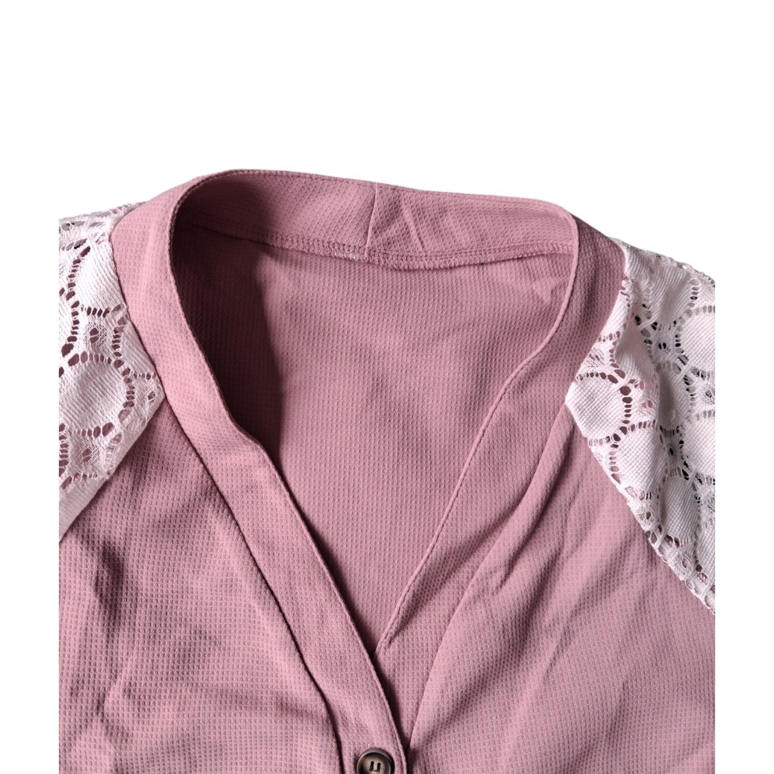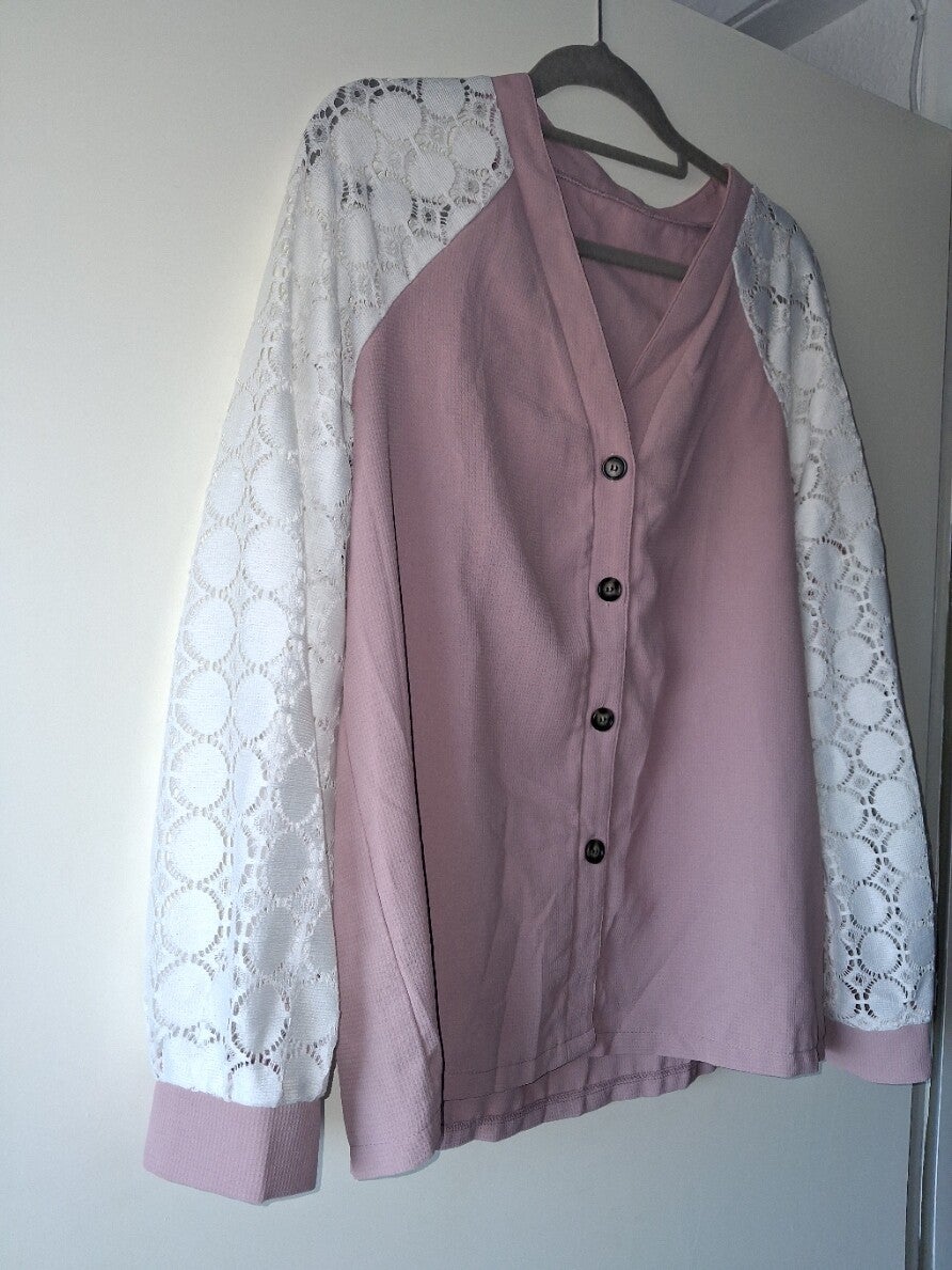 Lichtroze shirt met knopen en kanten mouwen XL