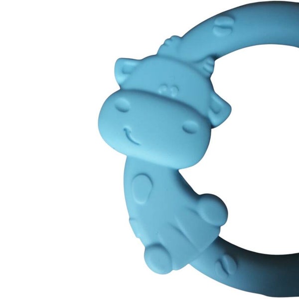 Zachte silliconen bijtring koe blauw