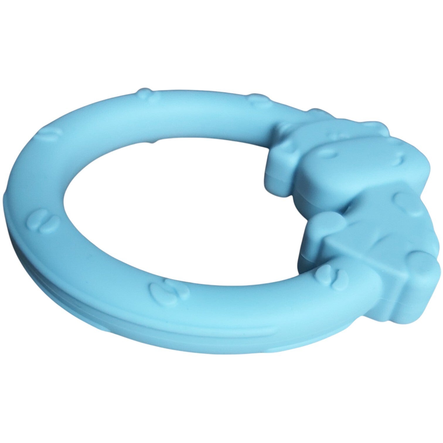 Wanneer je baby tandjes krijgt, zorgt dit vaak voor ongemak. Een bijtring kan de pijn van doorkomende tanden verminderen. Op deze soliconen bijtring kan je kindje kan bijten. Ze zijn zo ontworpen dat je baby dit veilig kan doen, zonder zijn of haar mond of het speelgoed te beschadigen. Het bijten verlicht de pijn van doorkomende tandjes. De eerste tandjes komen meestal door als je baby tussen de 4 en 7 maanden oud is. Dit zorgt vaak voor ongemak en pijn aan het tandvlees van je kindje. Het is een nieuw en onprettig gevoel waaraan hij moet wennen. Sabbelen en bijten op een bijtring kan hem of haar hierbij helpen. De tegendruk die dit op zijn tandvlees geeft, verlicht de pijn. Ook kan een bijtring ervoor zorgen dat de tanden sneller doorkomen. Op veel bijtringen zitten bobbels of noppen. Deze masseren het tandvlees van je baby als hij hierop bijt. Dat is extra fijn voor je kindje. En omdat een bijtring vaak een leuke kleur of vorm heeft, kan hij er tegelijkertijd fijn mee spelen. Deze bijtring is vaatwasmachine bestendig. En heeft de afmeting van 7x8cm. En weegt 29 gram. Kleur blauw. thema koe.