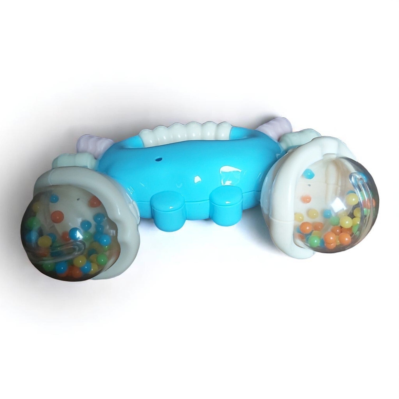 Rammelaar voor de afleiding wanneer je baby last krijgt van doorkomende tandjes. Wanneer je baby tandjes krijgt, zorgt dit vaak voor ongemak. Een bijtring of deze rammelaar kan de pijn van doorkomende tanden verminderen. Op deze rammelaar zitten silliconen krab pootjes waar je kindje op kan bijten. Ze zijn zo ontworpen dat je baby dit veilig kan doen, zonder zijn of haar mond of het speelgoed te beschadigen. Het bijten verlicht de pijn van doorkomende tandjes. De eerste tandjes komen meestal door als je baby tussen de 4 en 7 maanden oud is. Dit zorgt vaak voor ongemak en pijn aan het tandvlees van je kindje. Het is een nieuw en onprettig gevoel waaraan hij moet wennen. Sabbelen en bijten op een bijtring of soortgelijke speelgoed, kan hem of haar hierbij helpen. De tegendruk die dit op zijn tandvlees geeft, verlicht de pijn. Ook kan een bijtring of soortgelijke speelgoed ervoor zorgen dat de tanden sneller doorkomen. Door de ontworpen bobbels of noppen. Deze masseren het tandvlees van je baby als hij hierop bijt. Dat is extra fijn voor je kindje. En omdat een bijtring of soortgelijke speelgoed, vaak een leuke kleur of vorm heeft, kan hij er tegelijkertijd fijn mee spelen. Deze bijtring heeft de afmeting van 9x13cm. Kleur blauw meerkleurig.
