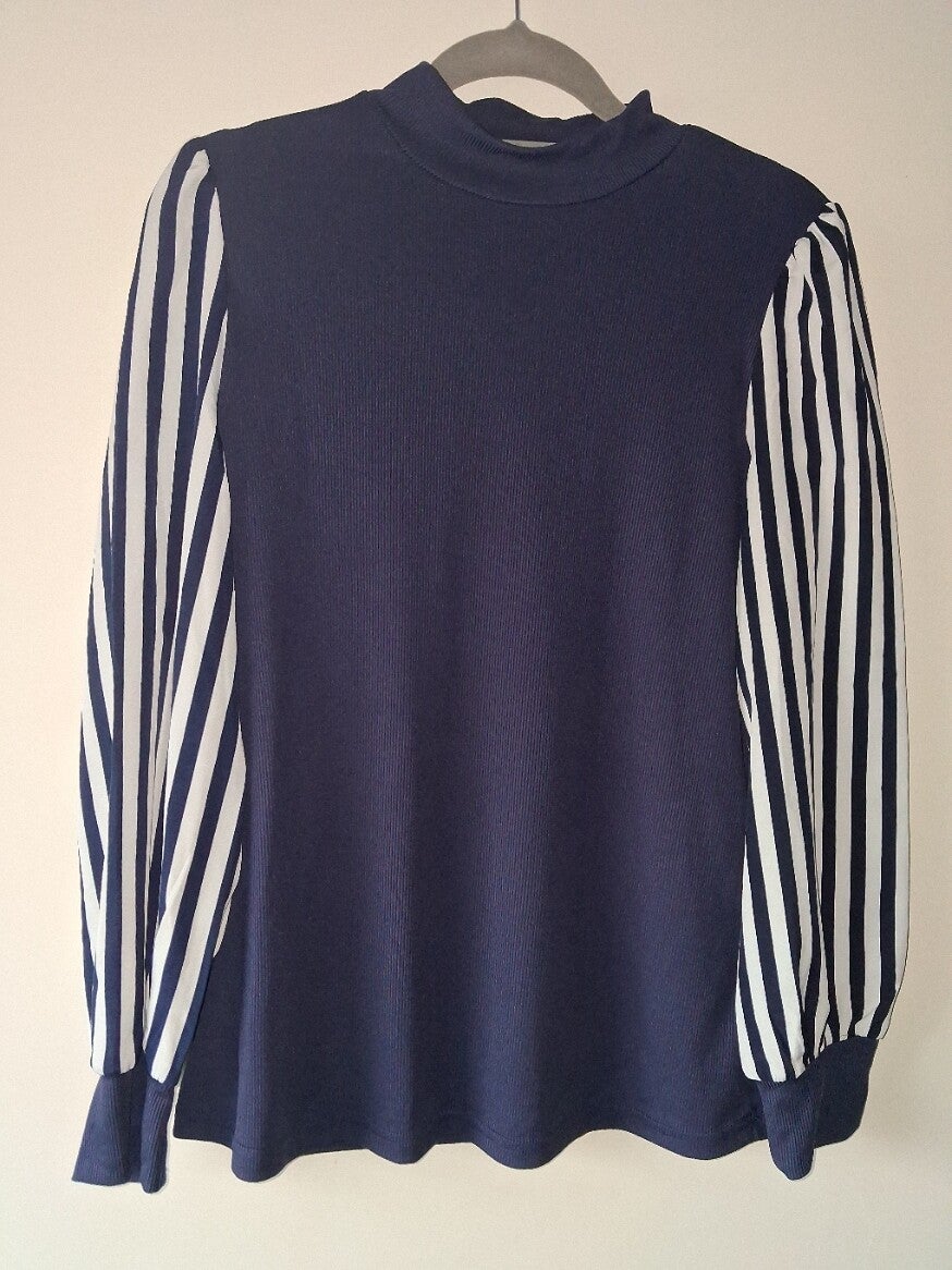 Stretchy shirt met gestreepte mouwen blauw wit XL
