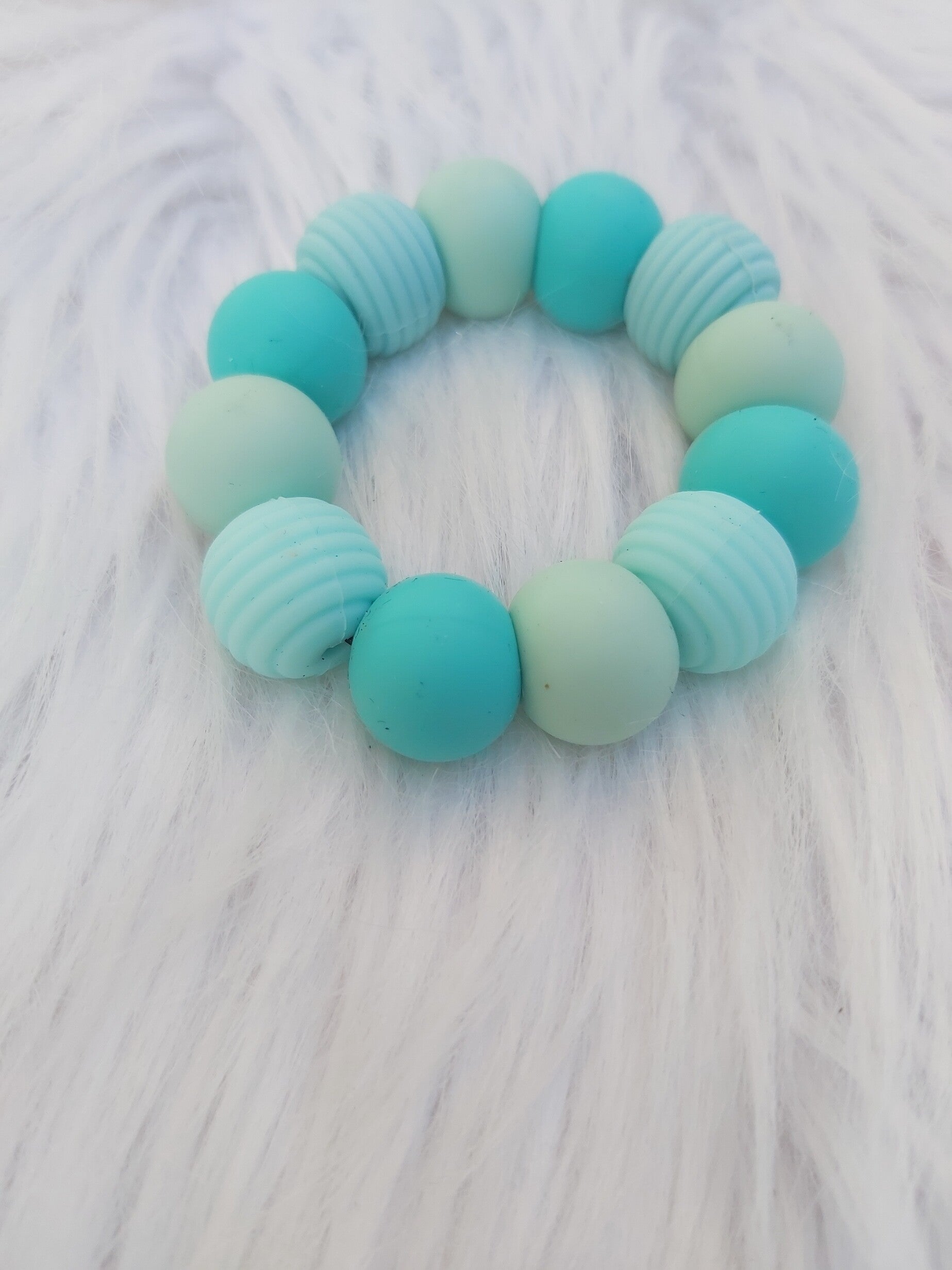 Baby-Mama geschenkset bijtring + gepersonaliseerde sleutelhanger turquoise
