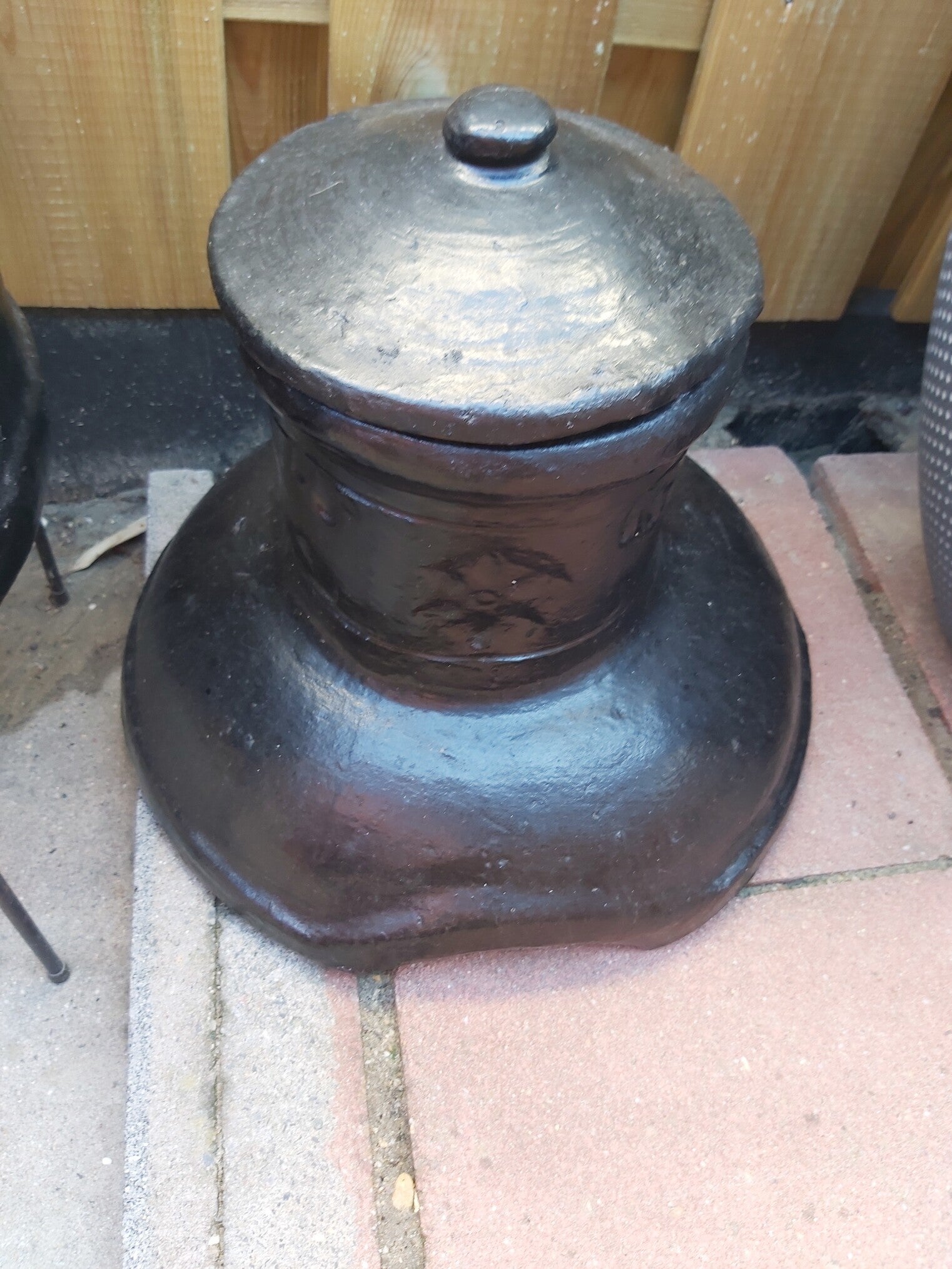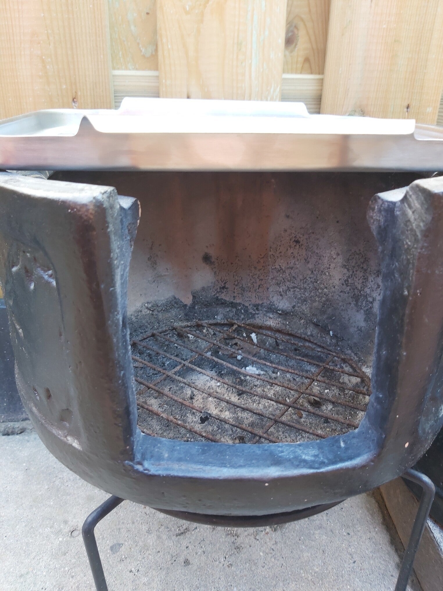 Let op alleen te halen! Sfeervol genieten haard en bbq in 1. Deze eyecatcher mag niet ontbreken in de tuin. Met de kleihaarde BBQ terrashaard, geniet je van een sfeervol haardvuur met vrienden en familie en maak je de heerlijke barbecuegerechten, allemaal in één product. De traditionele BBQ haard is gemaakt van poreuze klei, waardoor de warmte extreem goed wordt geleid en je langdurig warm blijft met minder houtblokken. Wordt geleverd met een nieuwe grillplaat. De kleihaard is niet alleen een terrashaard, maar ook eenvoudig om te toveren tot barbecue. Het kleigedeelte bestaat uit twee delen, waardoor je gemakkelijk het bovenste deel eraf kunt halen om ruimte te maken voor het grillen van je favoriete gerechten. De haard staat op zijn metalen poten en wordt geleverd met een deksel voor extra gebruiksgemak. Dankzij de twee grote delen is de haard eenvoudig te verplaatsen, zodat je overal in je tuin kunt genieten van het sfeervolle vuur en de smakelijke gerechten van de barbecue.