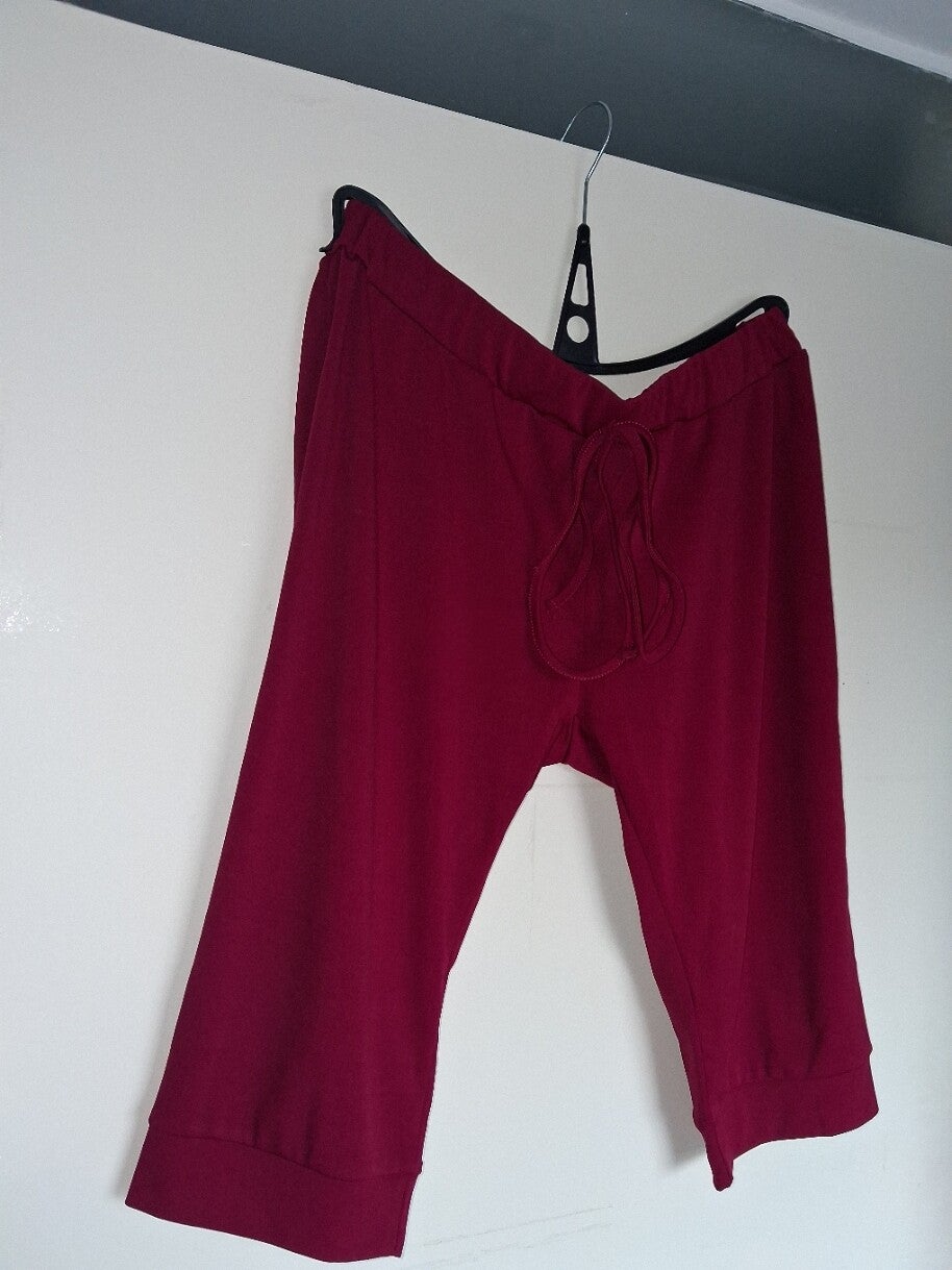 Bordeauxrode korte driekwart broek, maat 2XL