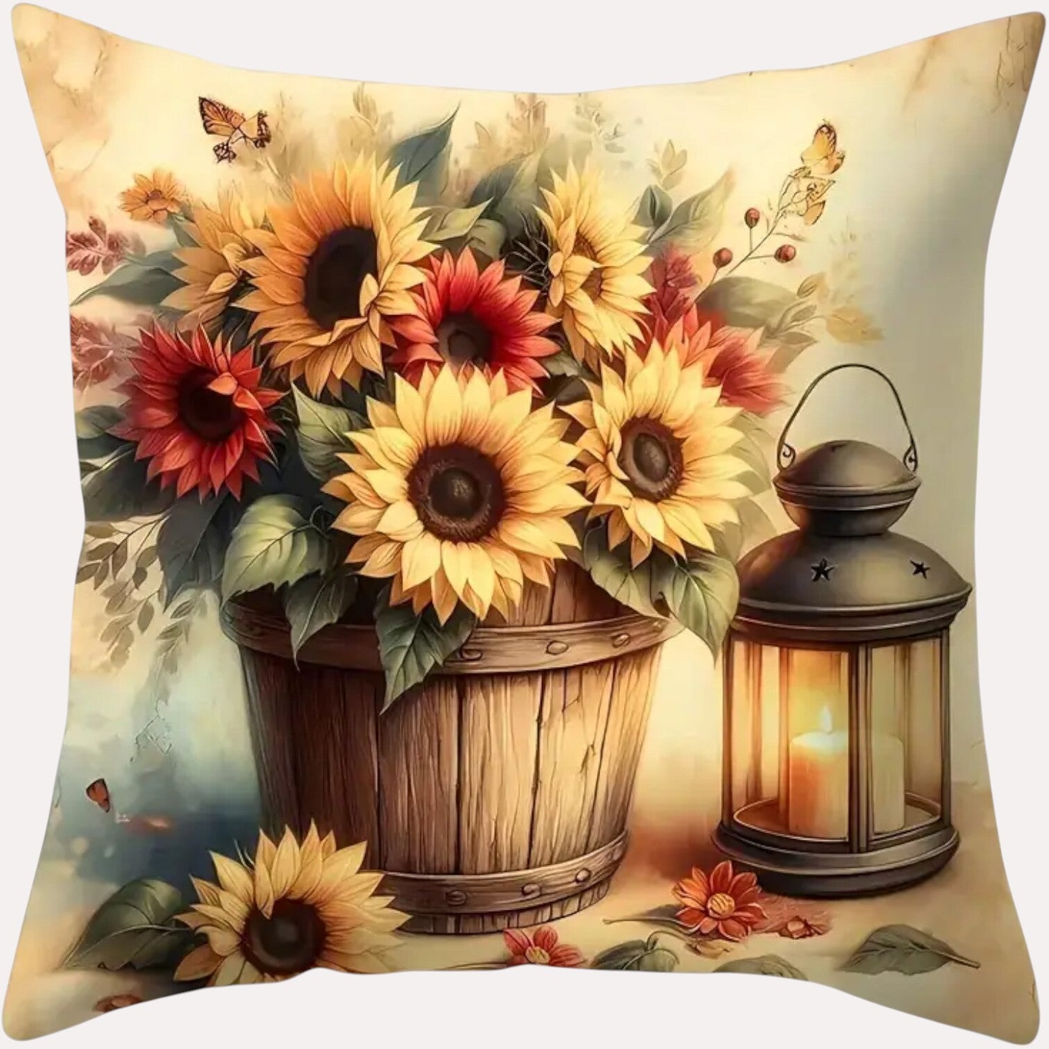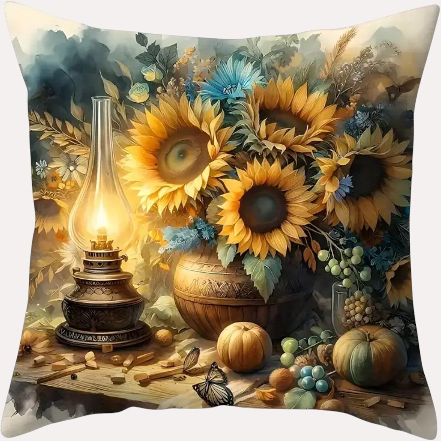 Set van 4 kussenhoezen zonnebloem olie lampje 40x40cm