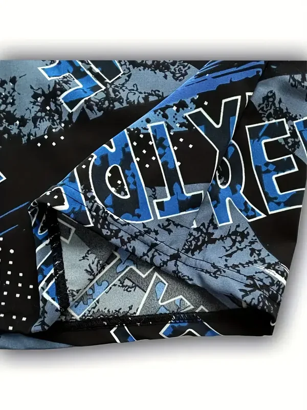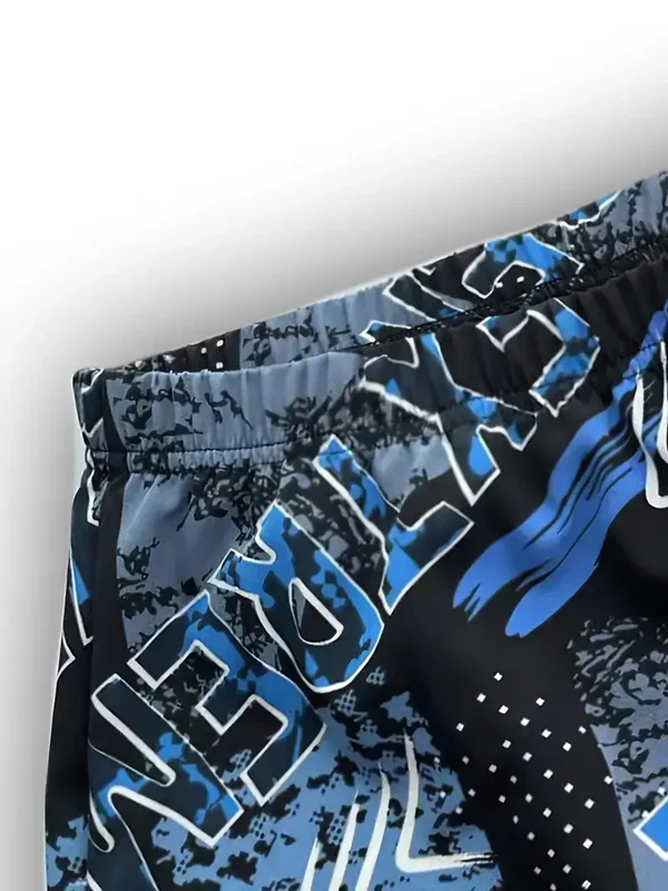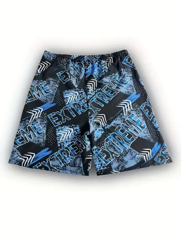 Strandshort blauw print extreme met een elastische tailleband. maat XXXL. Taille 103-109cm Heupen 119-125cm