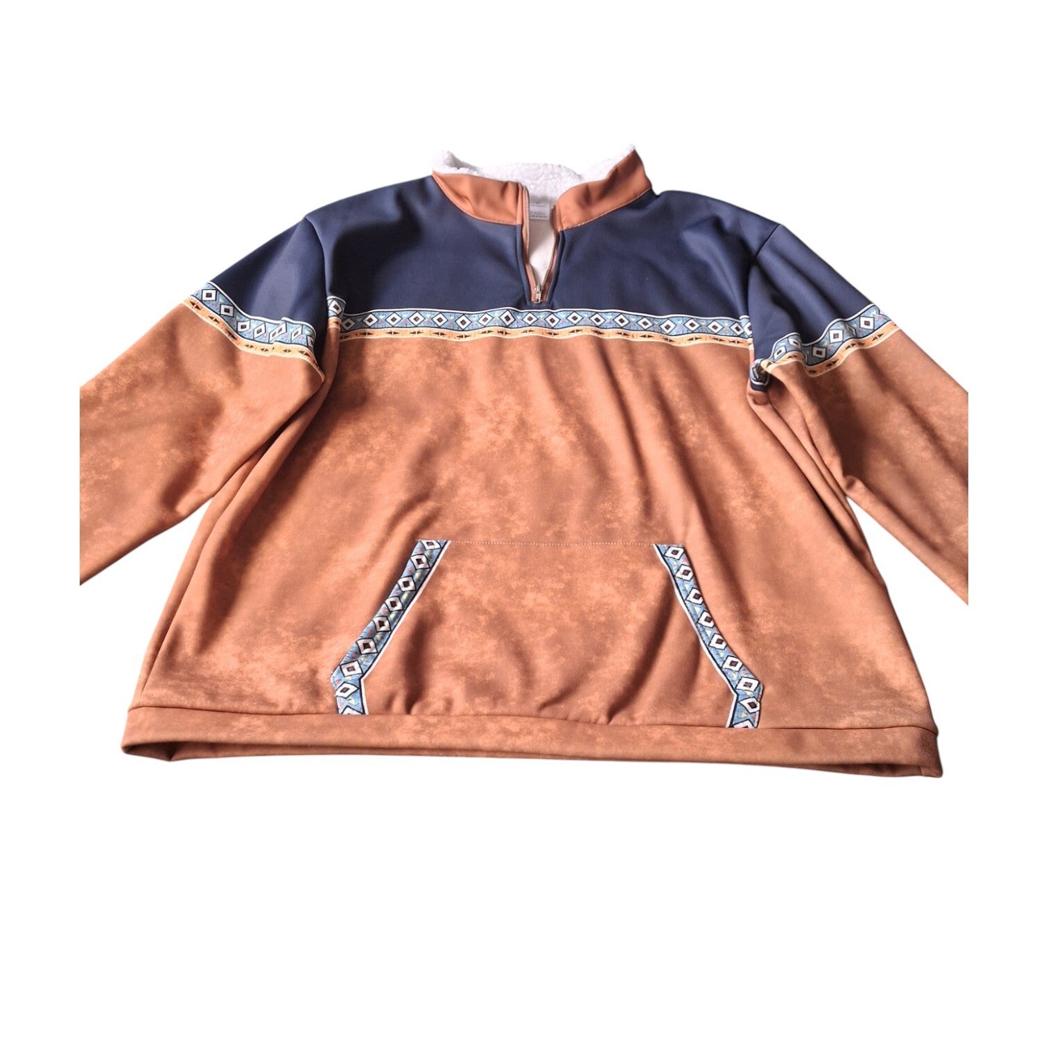 Weinig gedragen maat 3XL mooie warm gevoerde heren trui bruin donkerblauw. Oksel 69cm lengte 77cm schouder 58,5cm armlengte vanaf naad 68cm binnenarmlengte vanaf oksel 55cm.