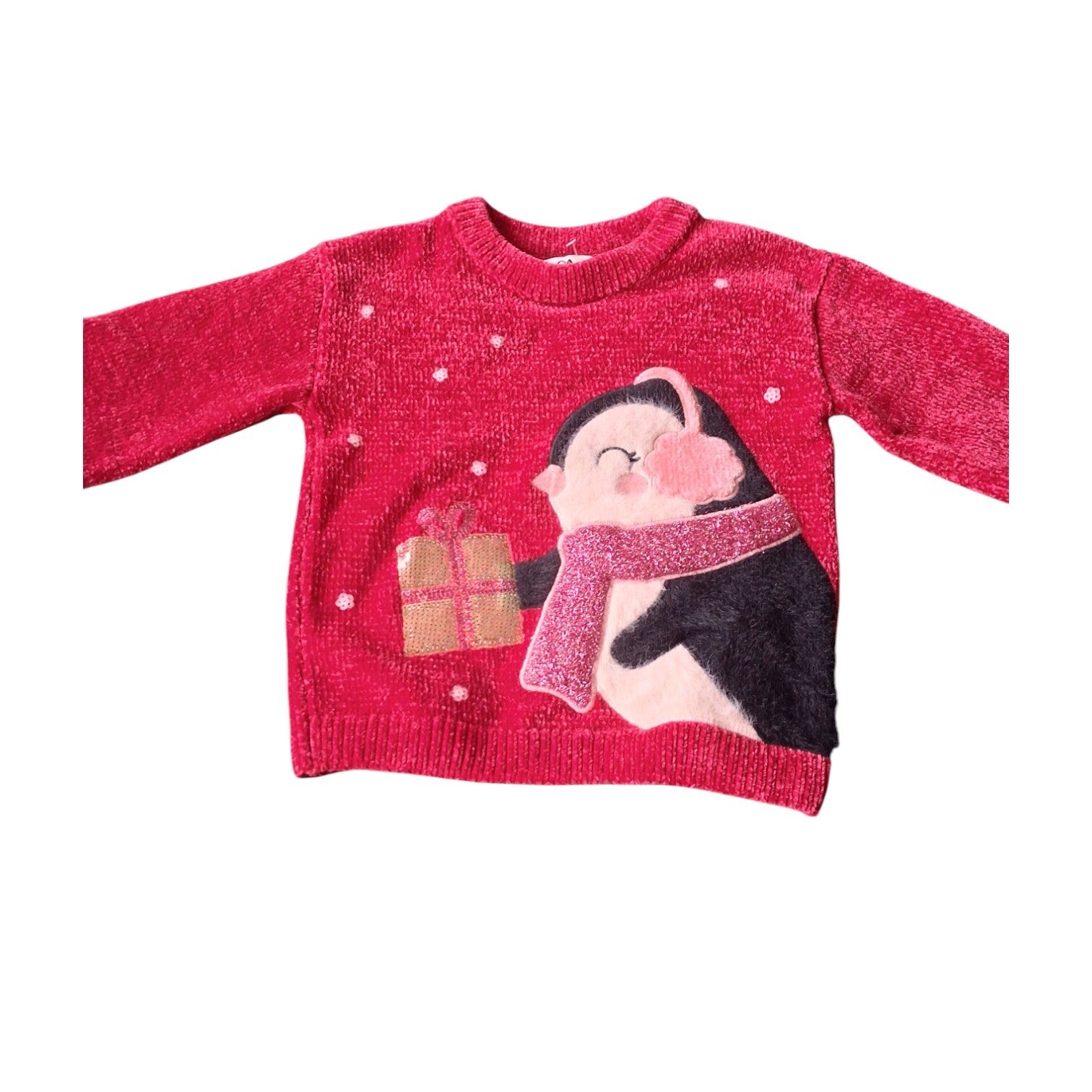 nieuw. Leuke zachte en warme kersttrui met pinguin print. Merk C&A. maat 122 - 7Y. En is gemaakt van polyester nylon en acryl. oksel 39cm. schouder 36cm. lengte 42cm.