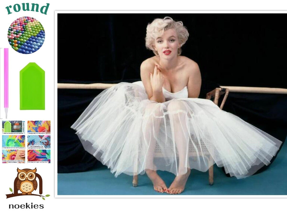 Diamond Painting Marilyn Monroe witte jurk 50x40cm (rond)