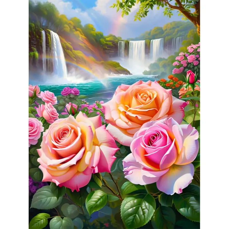 Mooie Diamond Painting. Thema bloemen. Rozen met watervallen. Deze Diamond Painting is 40x30cm. Het painting vlak is 35x25cm. Laat jouw creativiteit schitteren met deze prachtige Diamond Painting. Stap in de wereld van ontspanning en creativiteit met deze complete Diamond Painting set. Het ontwerp toont een schitterende afbeelding met oog voor detail, die tot leven komt zodra jij elk steentje op zijn plek legt. Of je nu een beginner bent of een ervaren liefhebber, deze set biedt urenlang plezier én een prachtig eindresultaat. Het stevige canvas van hoge kwaliteit is voorbedrukt en voorzien van een plaklaag, zodat je eenvoudig aan de slag kunt. De kleuren zijn helder, de symbolen goed leesbaar en alle benodigde accessoires zijn inbegrepen: van de steentjes tot de pen, wax en tray. Perfect om zelf te maken of cadeau te doen aan iemand die houdt van creatief bezig zijn!