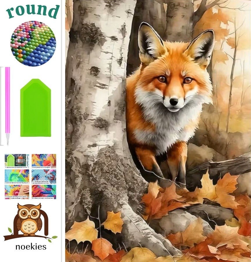 nr 84 Diamond Painting Vos in het bos 50x40 (rond)